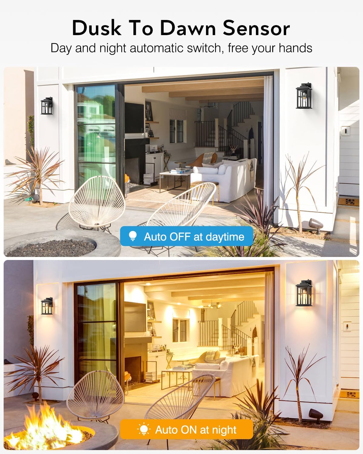 - 👍【Advanced Dusk to Dawn Sensor】Experience the smart functionality of our porch lights outdoor wall lights, thanks to its advanced dusk to dawn sensor. Equipped with a high sensitivity photocell sensor, these dusk to dawn led outdoor light intelligently turn on at dusk and turn off at dawn, based on the surrounding brightness. Free yourself from the hassle of manual operation and enjoy energy savings, bringing you unparalleled convenience in your day-to-day life.