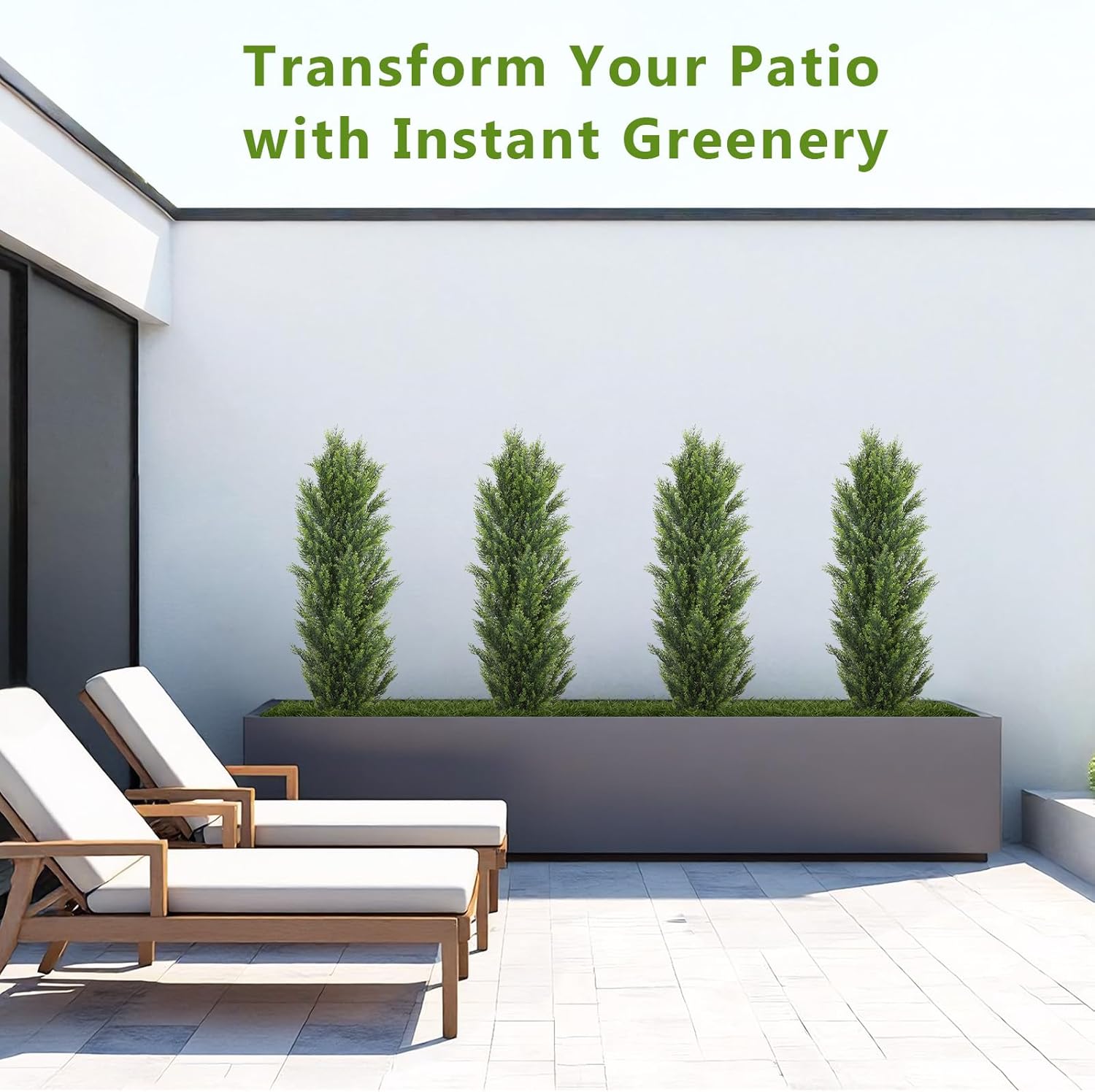 - 【Tall & Realistic Look – 5ft Natural Greenery】Standing 5 feet tall from the bottom of the pot to the tip of the tallest leaf, this artificial cedar tree features dense, lifelike greenery that mimics a real evergreen shape. Please note: The tree is shipped compressed. To reach its full height and natural look, gently fluff the branches upward by hand after assembly