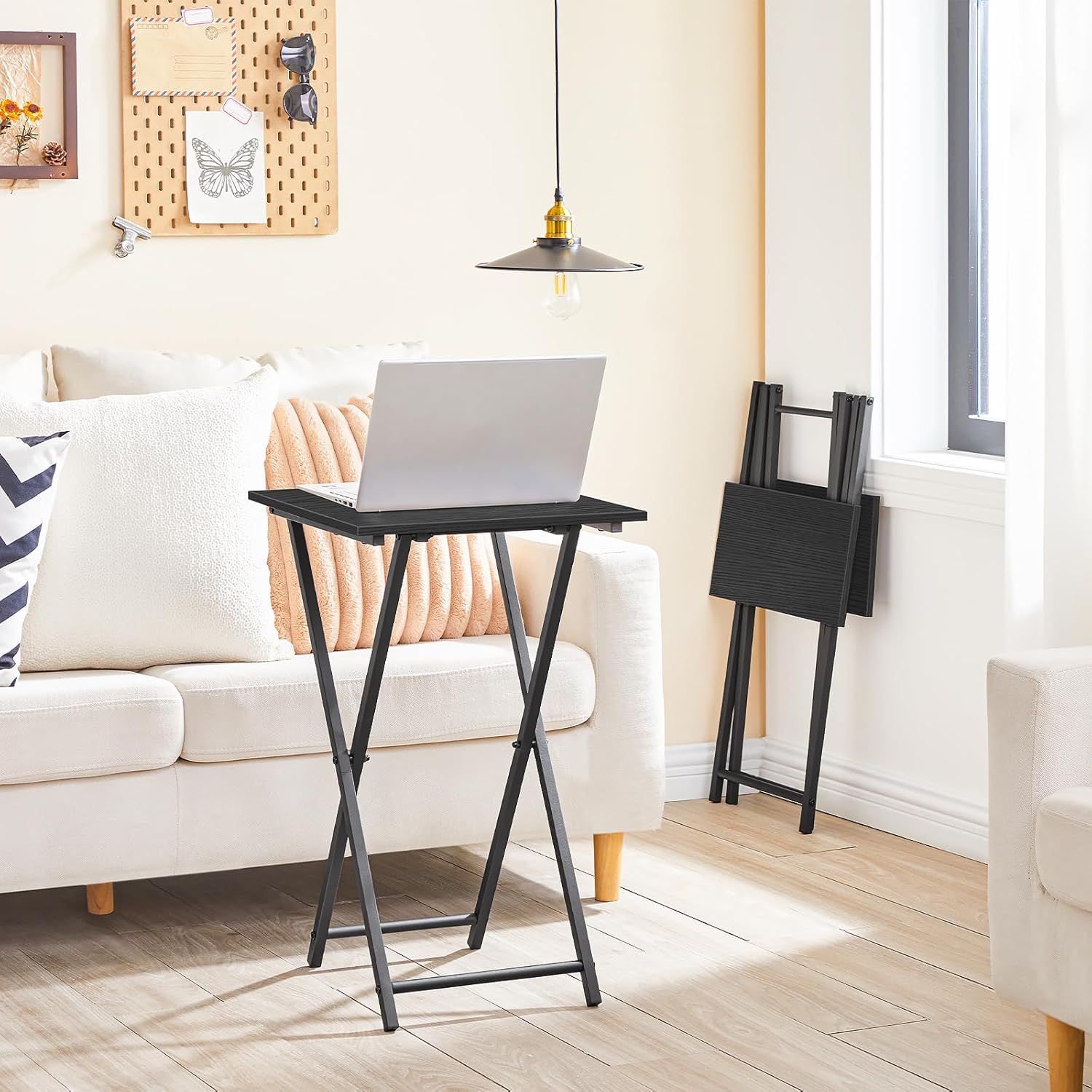 - Multiple Advantages: Don't want the side table taking up too much space when not in use? This TV tray can easily be folded and stored under the sofa, freeing up more common space.When folded, the folding table is portable to be carried anywhere needed