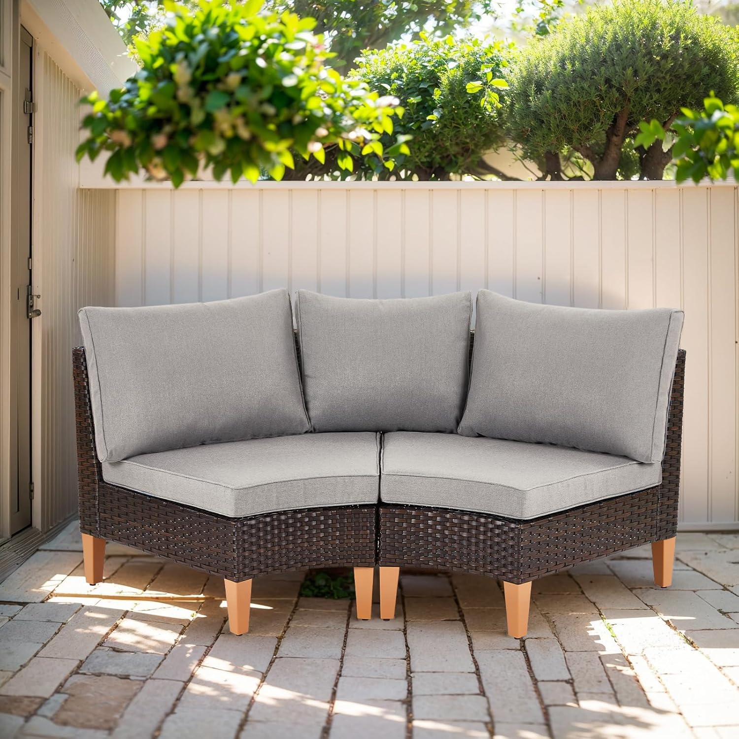 HUMMUH Outdoor Modular Sectional Couch All Weather PE Wicker Patio Sofa Half-Moon Loveseat for Garden Porch Backyard