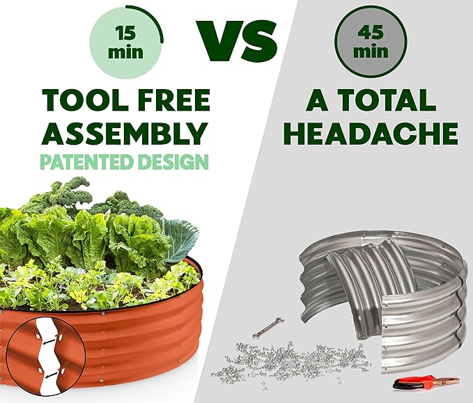 - EFFORTLESS ASSEMBLY, LIKE NO OTHER! Begin your planting journey by choosing our innovative patented design, featuring the perfect combination of easy assembly and durability. Thanks to our unique tool-free design, assembly is a breeze and can be completed in just 15 minutes! Get started on your garden right away and enjoy fresh, healthy produce in no time.