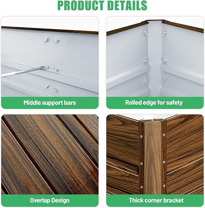 - EASY ASSEMBLY: Our garden box with assembly manual and tools allow you to easily assemble within a short time. The planter raised beds with safe rolled edge to prevent injury.Note: Peel off the outer protective film before assembly.
