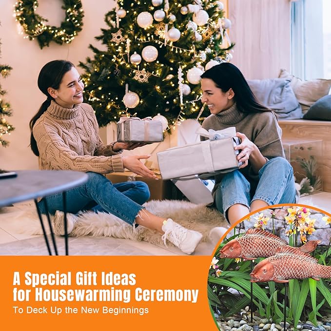 - Easy to Install: This garden ornament does not require any tools, and can be placed anywhere you want by inserting an iron rod into the hole under the fish maw. Please dont push from the top of the fish itself.