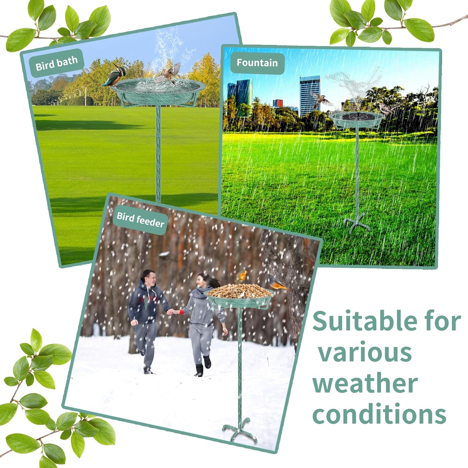 - 【Metal Bird Feeder Stand】 The whole bird bath and the pedestal are made of premium quality metal and and covered with safety coating, long-lasting and sturdy, can resist rain, water, and other weather, withstand strong sunlight and cold temperatures.