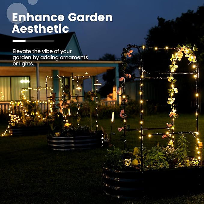 - 【Multifunctional Trellis】More than just a simple raised planter box, the trellis adds a realm of possibilities to your garden. You can hang small flower pots, decorations, and ambient lights on the trellis, or drape it with mesh or covers. As lush plants climb over the trellis, they also provide refreshing shade for your garden.