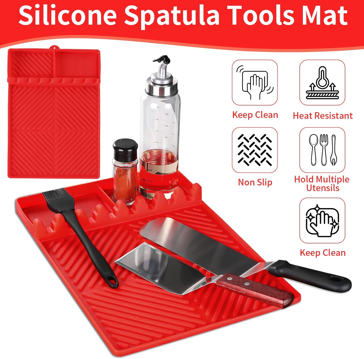 - 【Versatile and Heat Resistant】- From ladles to spatulas, this silicone mat is a versatile companion for your essential kitchen tools. Its heat-resistant properties make it ideal for use near stoves or as a protective layer for your countertop.