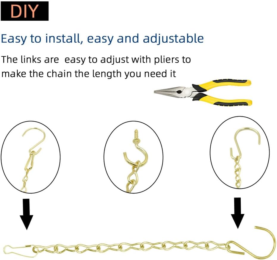 - ✅EASY TO INSTALL, EASY AND ADJUSTABLE: Hooks and clips are supplied. bird feeder chain can be easily DIYed to different sizes, allowing for the versatile hanging of various items. By customizing the chain's length, you can ensure a perfect fit for different objects, chain with hooks for plants, brass hanging planter