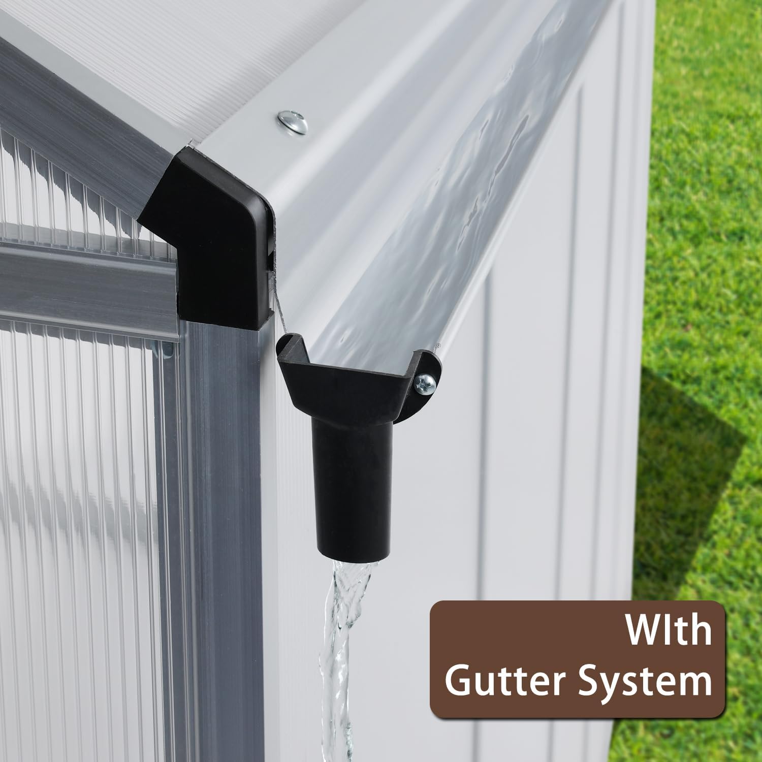 - Premium Panels - The greenhouse is made of high quality 4mm polycarbonate panels, which is better than market products for water-resistance, shading and stability. And with the leaking pipes, there will be no accumulation of water. Easy to clean up.