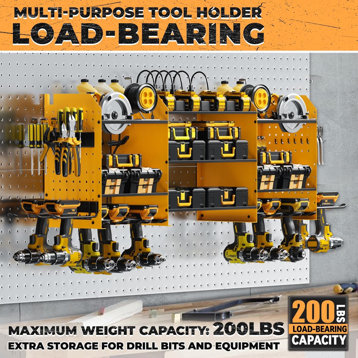 - [Perfect Garage Companion]Utilizing wall-mounted installation, this power tool rack maximizes unused wall space, saving time in tool retrieval. Ideal for garages, homes, workshops, sheds, backyard shops, and more, it offers suspended tool organization and storage.