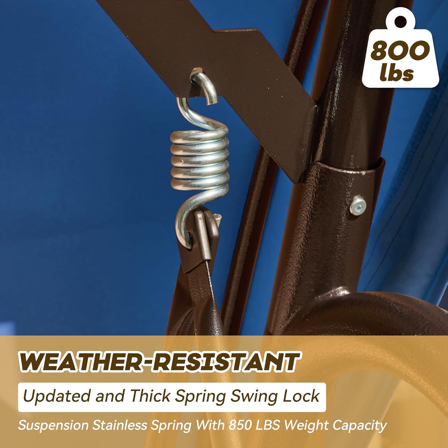- 【Sturdy and Safe Construction】: The maximum weight capacity of porch swing is 800 pounds, our glider swing is designed for 3 adults to sit comfortably. The swing outdoor has a reliable buckle on backrest, ensuring stability and preventing any unwanted swinging. The double protection of 3 seat garden swing is designed for preventing accidental tipping.