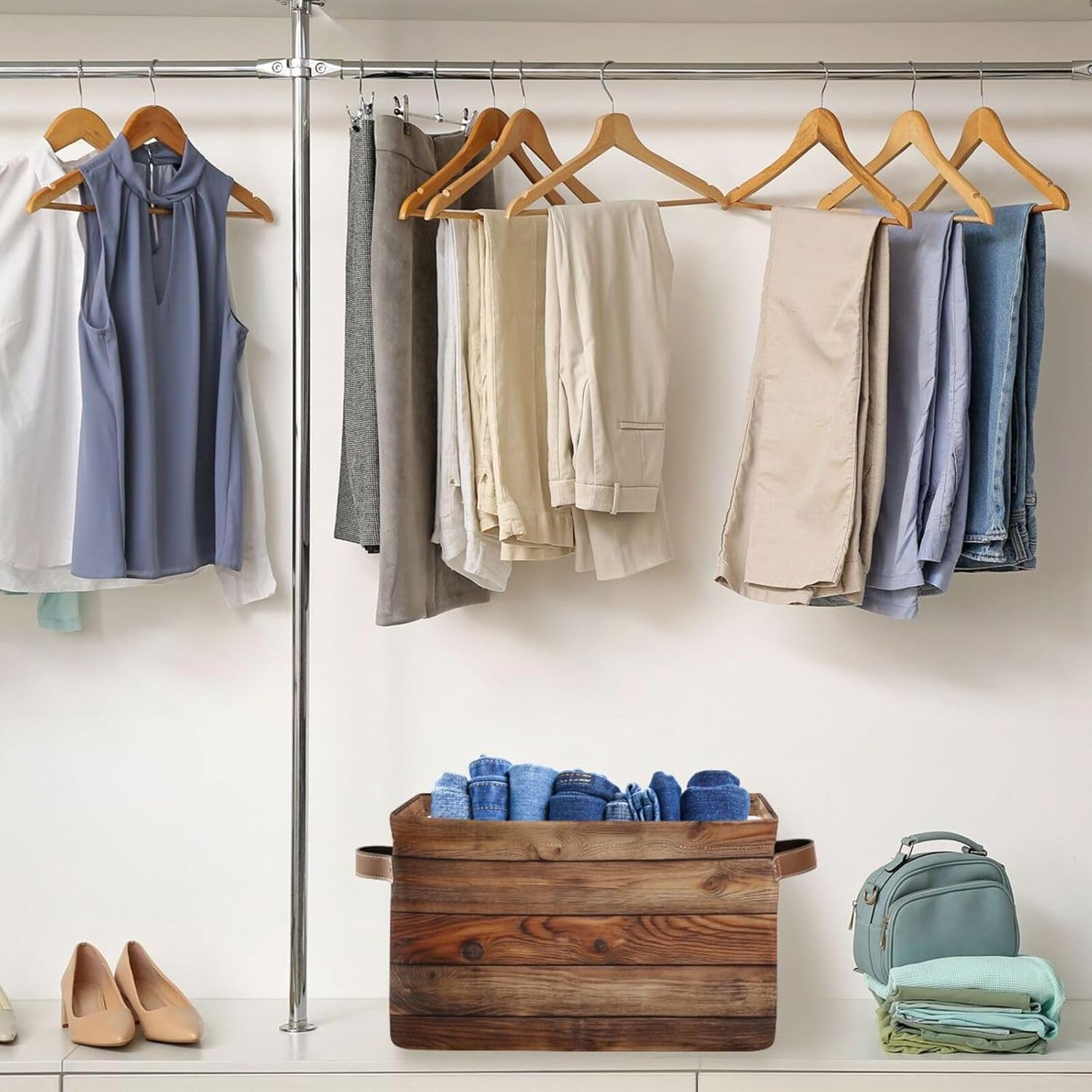 Wood Print Rectangular Retro Vintage Storage Basket Organizer Bin Shelf Baskets For Clothes Gifts For Home Office Dorm