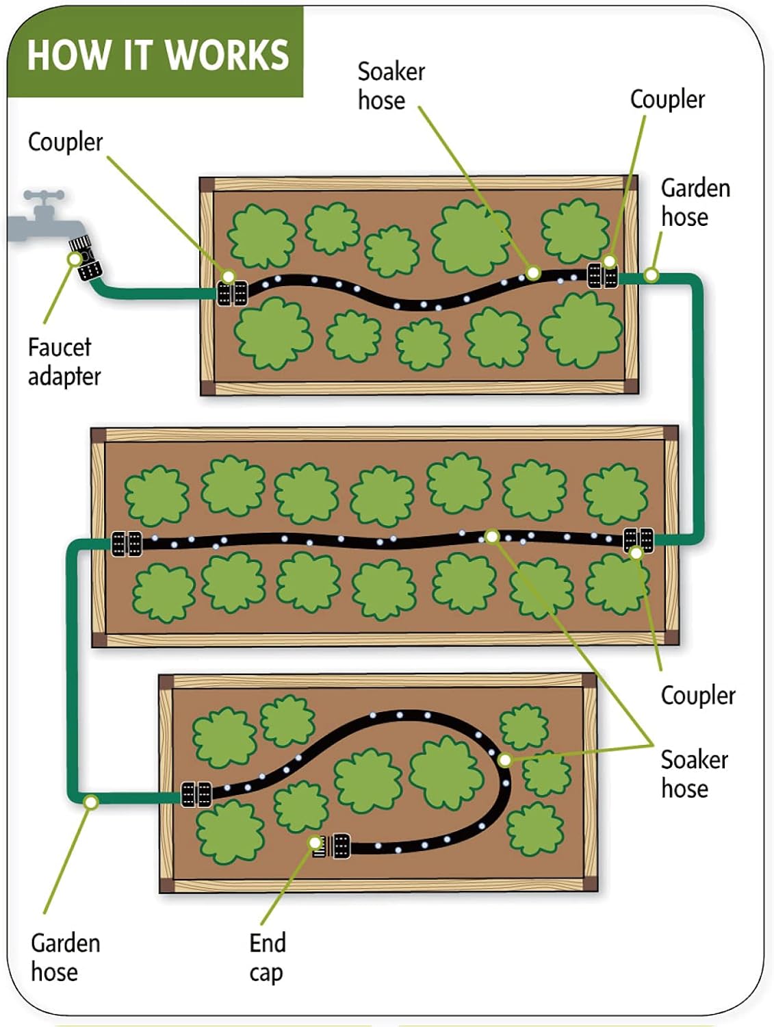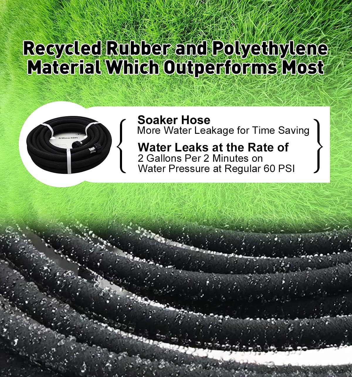 - EXTREMELY FLEXIBLE AND VERSATILE- High degree of tensile strength that makes the hose more durable in the hot summer. You can also place the hose where you want water to be, either above the ground surface or beneath the layers of leaves or soil with water pressure no greater than 60 PSI