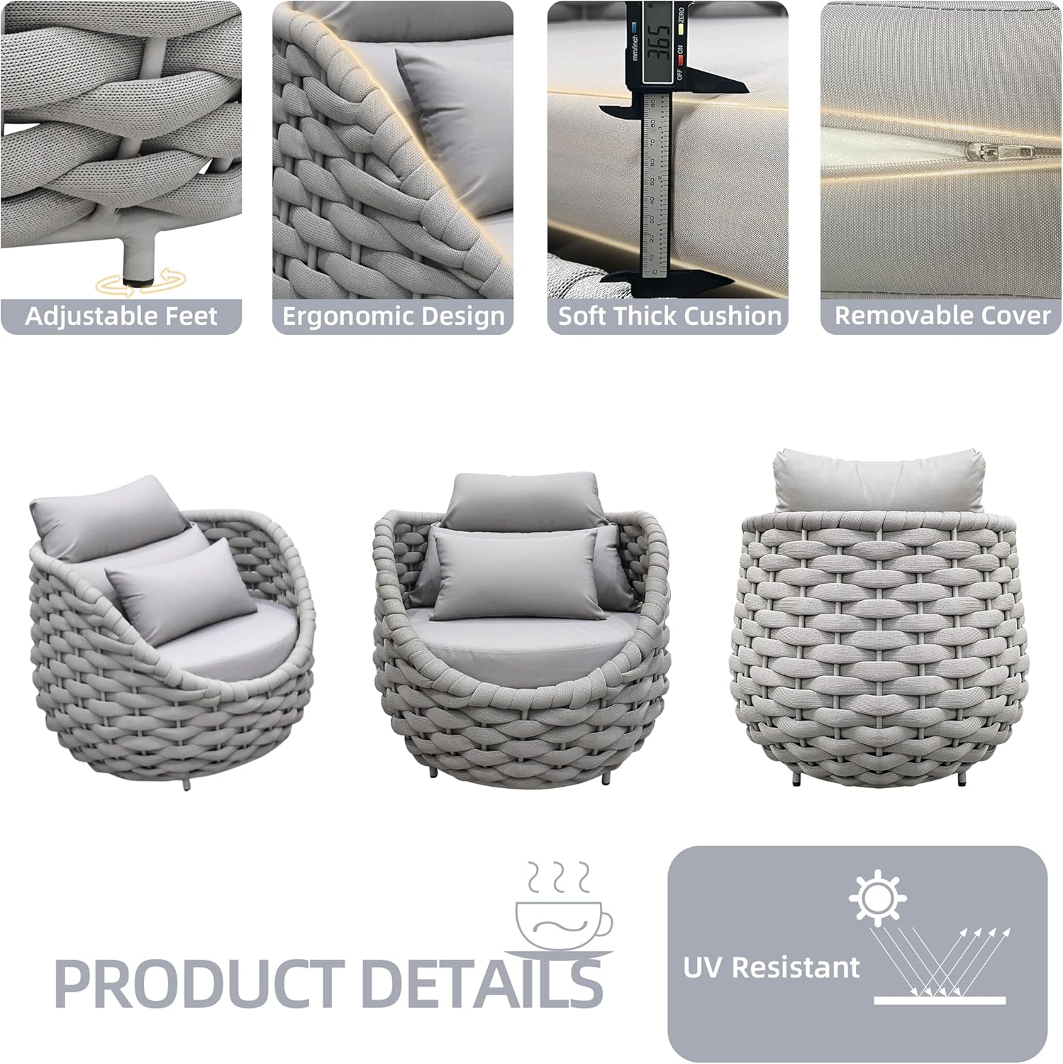 - NO required assembly & easy to clean:Our outdoor couch NO required assembly, just take them out and use. TWT patio chairs’ seat are easy to clean and polyester rope relatively soft. No need to take more extra special care to maintain patio couch