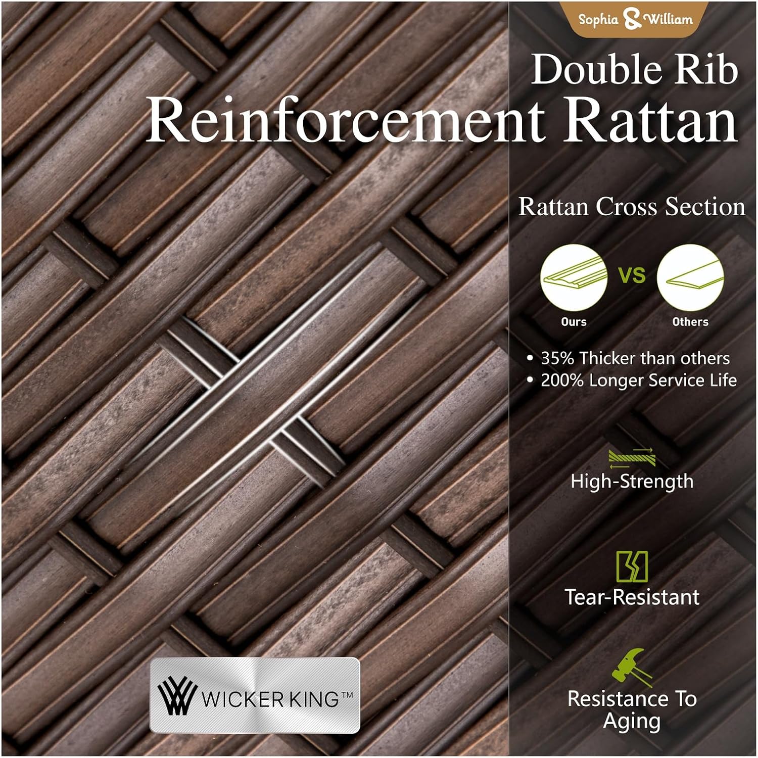 - LUXURIOUS COMFORT & ALL WEATHER USE: Constructed from allweather hand woven rattan wicker and rustproof steel frame. Sofa cushions are made of patent CUSHION PRO technology fabric which has excellent water resistant, oil-release, and stain-resistant properties, ensure that youll be able to enjoy your set for many seasons to come. Its 4-inch thick cushions and spacious seating area provide a perfect balance of softness and support, allowing you to relax for hours