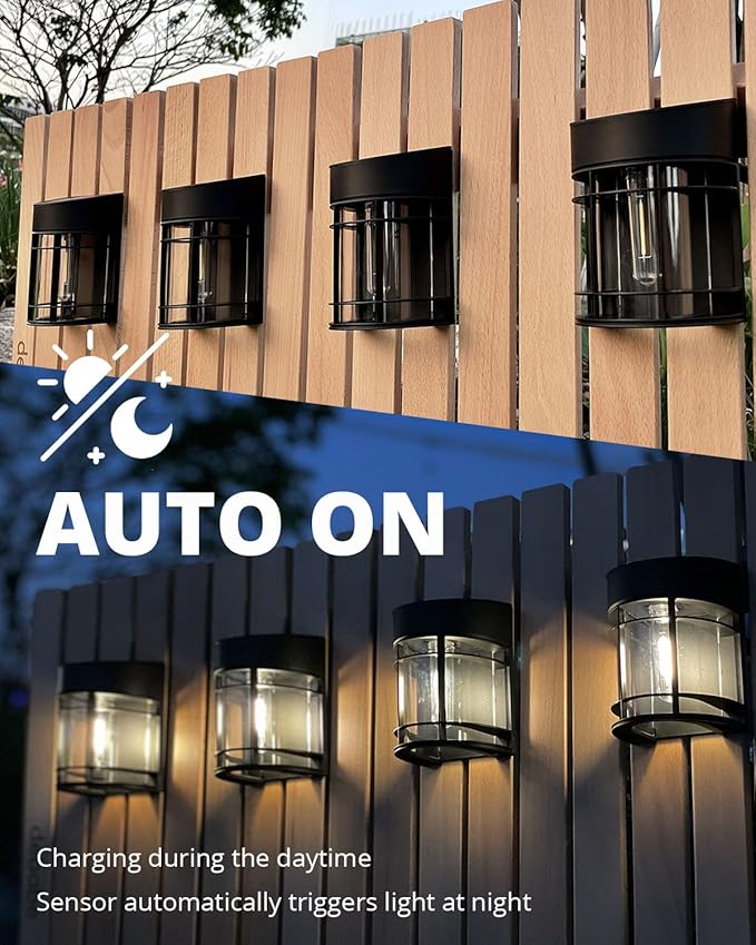 - Outdoor Solar Lights - Solar fence lights aren’t just give off beautiful Warm lighting for illuminating the area surrounding your fence, they can also help to spruce up the overall aesthetics of your home garden. Design with U.S. Patent Certification