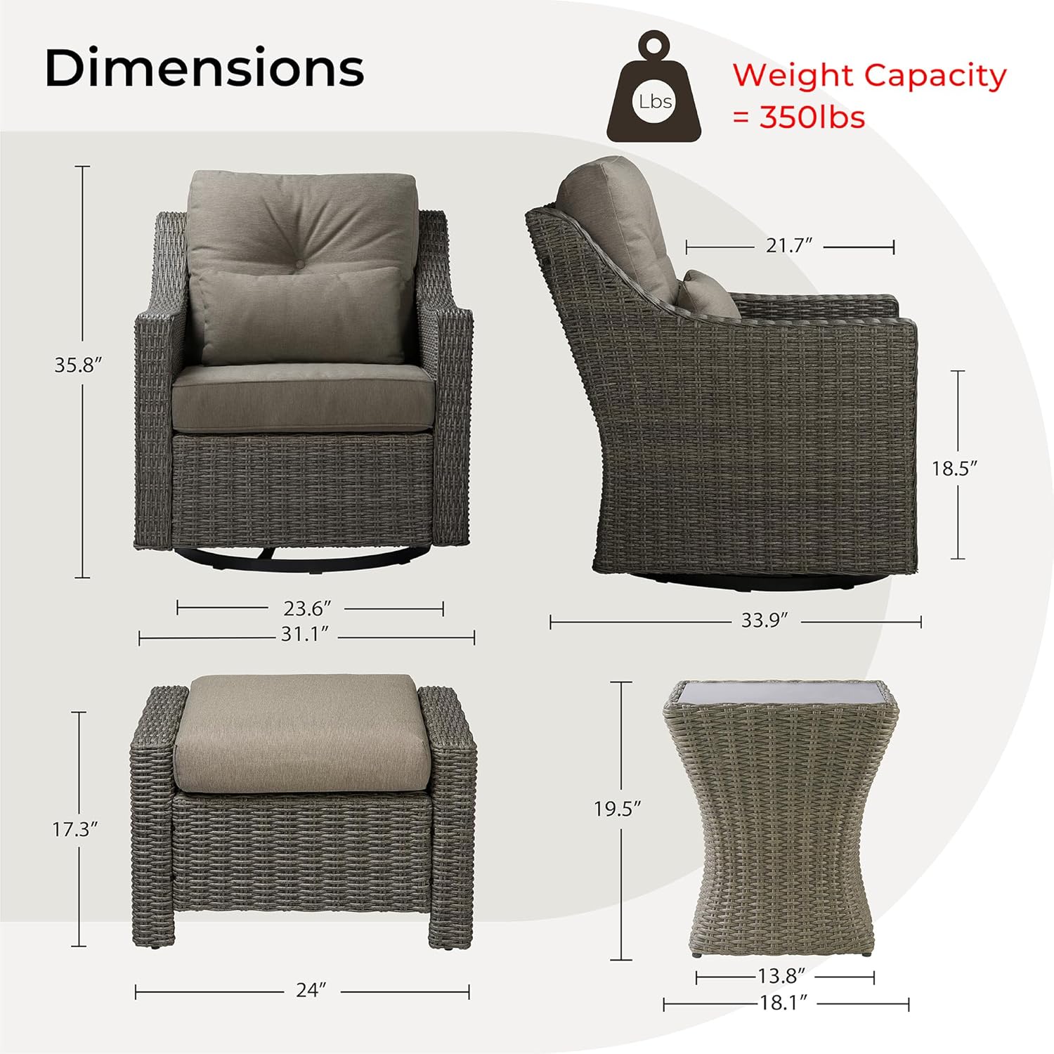 CHITA 5 Pieces Swivel Wicker Patio Furniture Set, Outdoor Conversation Set with 2 Pieces Rattan Rocking Swivel Chairs, 2 Pieces Ottomans, Thickened Cushions and Side Table