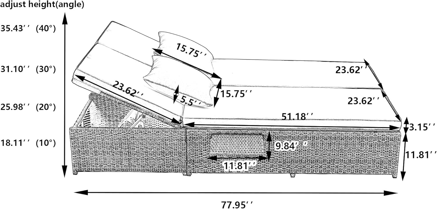 - 💗 High Quality Wicker Rattan Set: The reclining chairs are constructed from all-weather PE rattan frame which is water-resistant and UV-resistant. The seat cushions are filled with 3.15'' thick sponge for superb comfort and durable. The breathable cushion covers for seats and pillows are all easy to replace and machine washable.