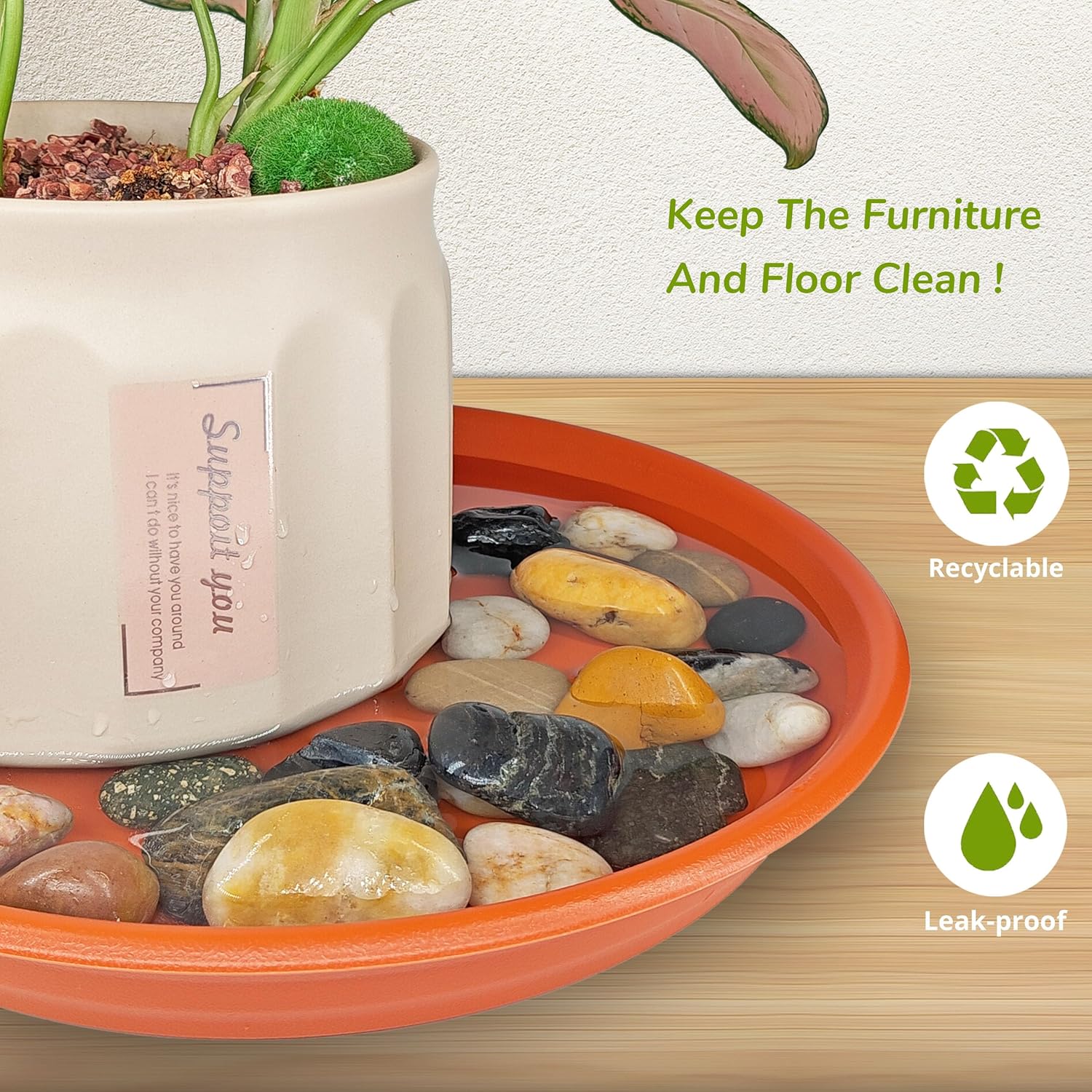 - Optimal Plant Drainage: These plant pot saucers help you catch water from the plant pot drainage hole. help protect wooden floors, carpets, and tabletops from water drainage and soil spillage. You can decorate the plant drip tray with colorful pebbles
