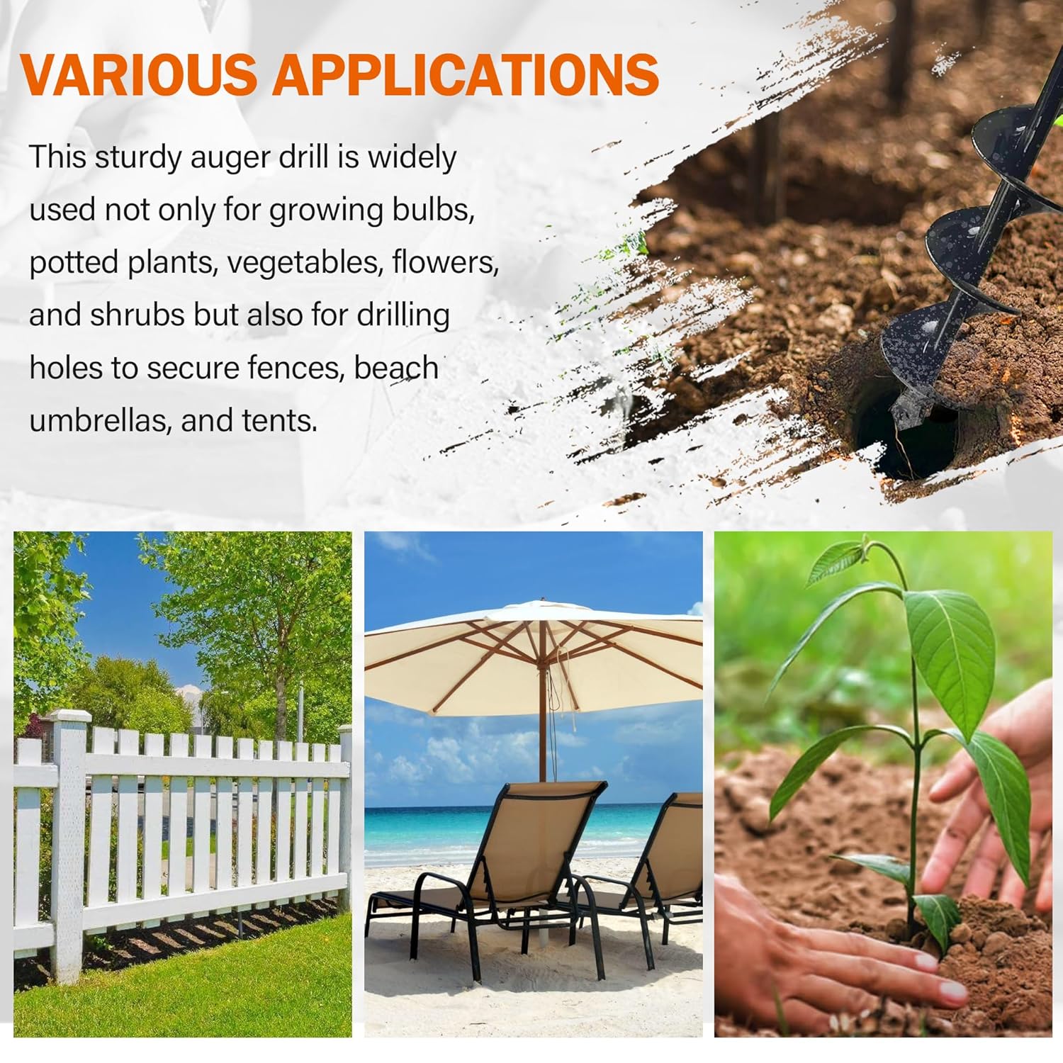 - WIDE APPLICATION: These augers for planting are perfect for planting small crops, vegetables, flowers, transplanting seedlings, mixing seeds, soil, and fertilizer. It’s not just limited to garden work, they can even be used for fence and tent installation.