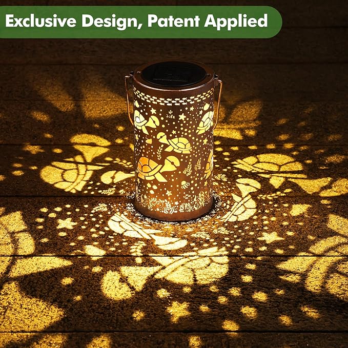Fabuday Turtle Solar Lanterns Outdoor Waterproof - Metal Hanging Solar Powered Lights Led for Outside, Patio, Porch, Balcony, Yard and Deck Garden Decor, Gardening Decorations Gifts for Women Mom