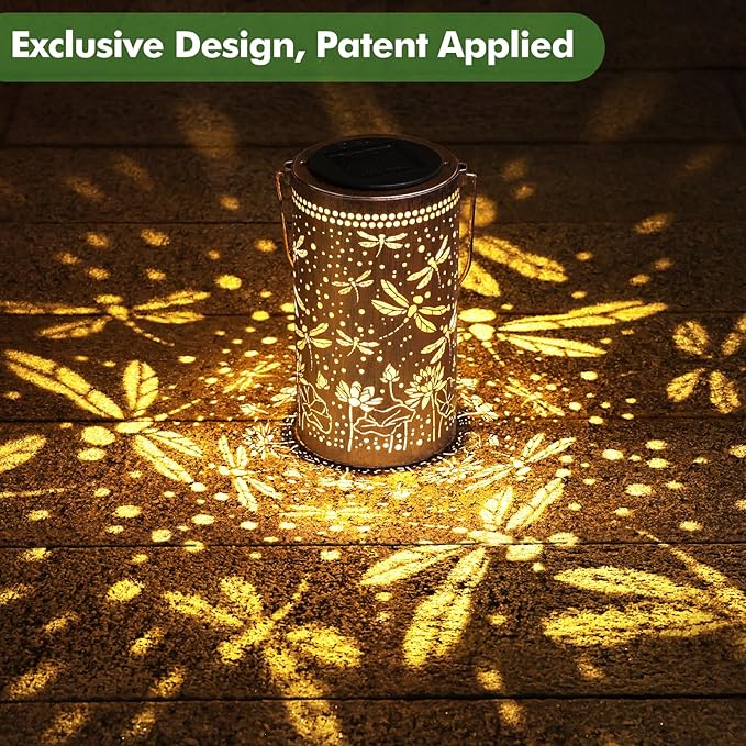 Fabuday Dragonfly Lotus Outdoor Solar Lantern Waterproof - Hanging Solar Power Lights Led for Outside, Garden Decor for Patio, Porch, Balcony, Yard and Deck, Gardening Decorations Gifts for Women Mom