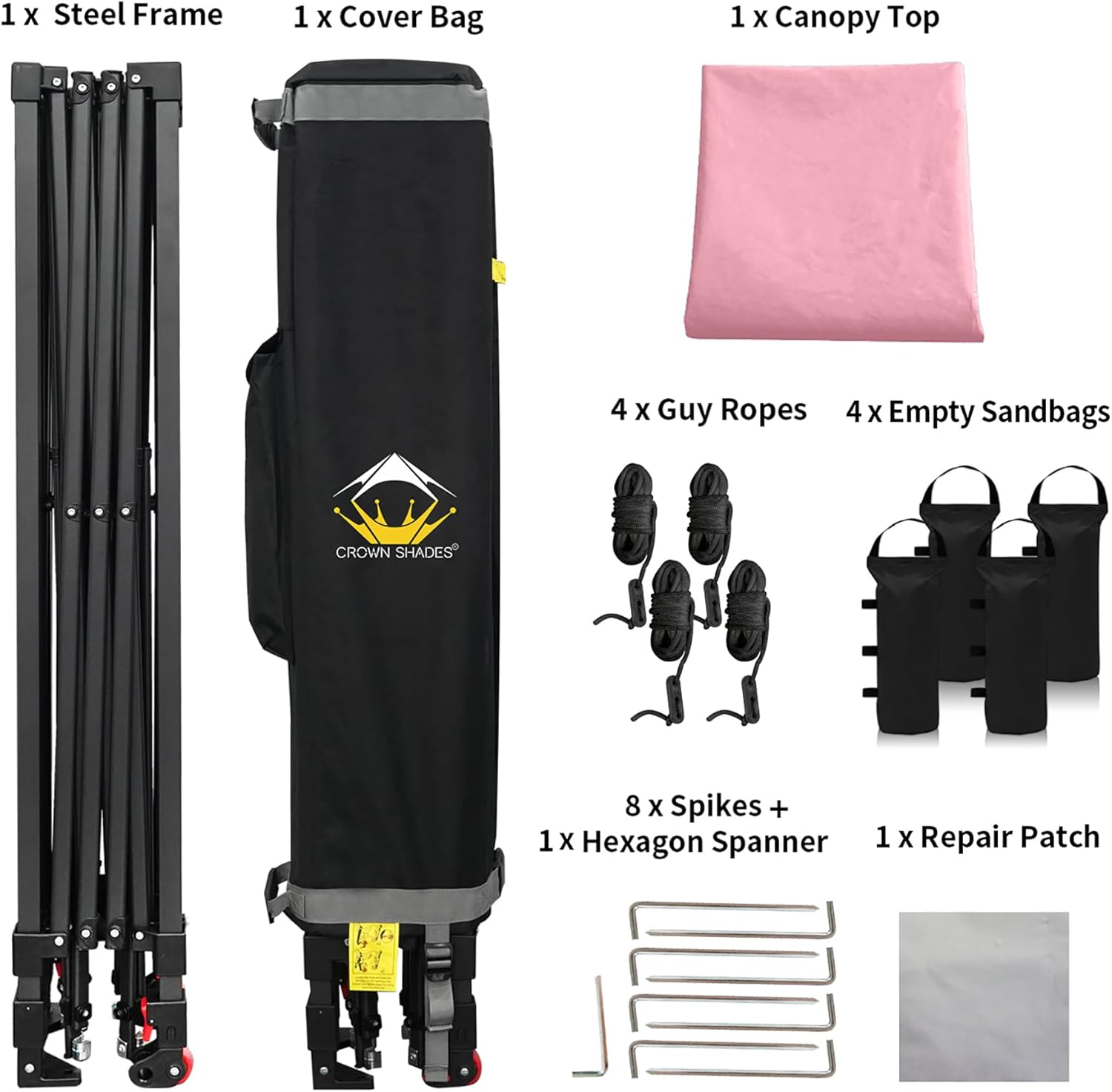 - HIGH GRADE STEEL FRAME - The durable, high-grade, corrosion-resistant steel truss frame with hardened through bolts comes pre-assembled and can be set up without any tools. Engineered to support up to 120 lbs. distributed across the frame, it ensures robust and reliable performance. The extended ceiling assembly and upgraded high peak design make it easier for rainwater to run off, preventing water pooling on the canopy. Perfect for extended outdoor use at markets, festivals, and exhibitions.