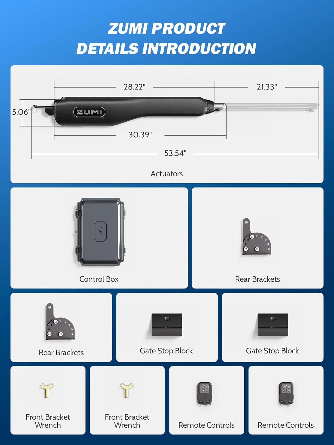 - Access Your Property with Ease: Zumi's dual swing gate opener handles gates up to 20 ft. long and weighing up to 900 lb., with app control and remote controls offering convenient, hands-free gate access