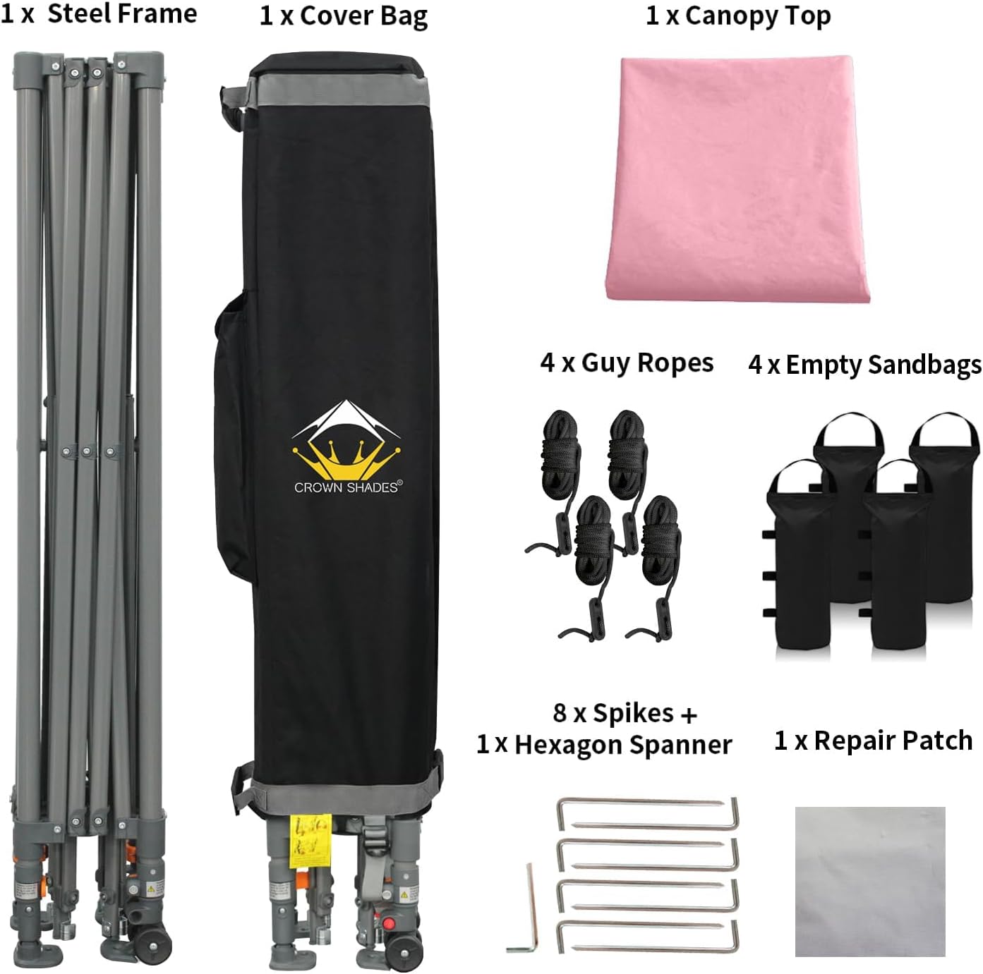 CROWN SHADES Adjustable Height on The Fly, 10x10 Pop Up Canopy - Beach Tent with One Push Setup - Easy Outdoor Sun Shade for Events, Parties, Camping - Outside Shade with STO-N-Go Bag, Pink