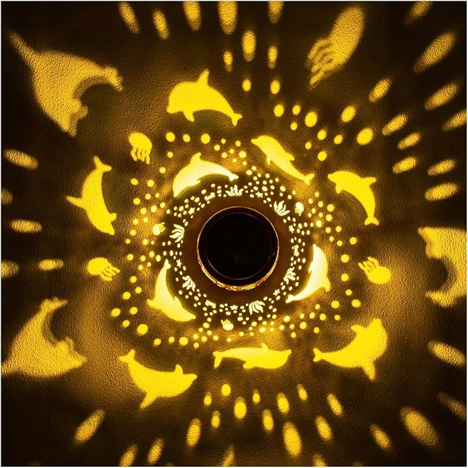 - 【Unique Garden Decor】Dolphin solar lantern can project unique and beautiful patterns in a dim environment,creating a gorgeous and warm atmosphere to bring life and fun to your garden and attract your family or friends.The unique hollow out design and beautiful antique bronze color give it an artistic touch,perfect for decorating gardens,backyards,corners,Outside,sidewalks and many other scenes.