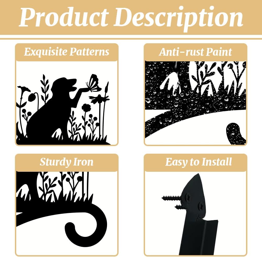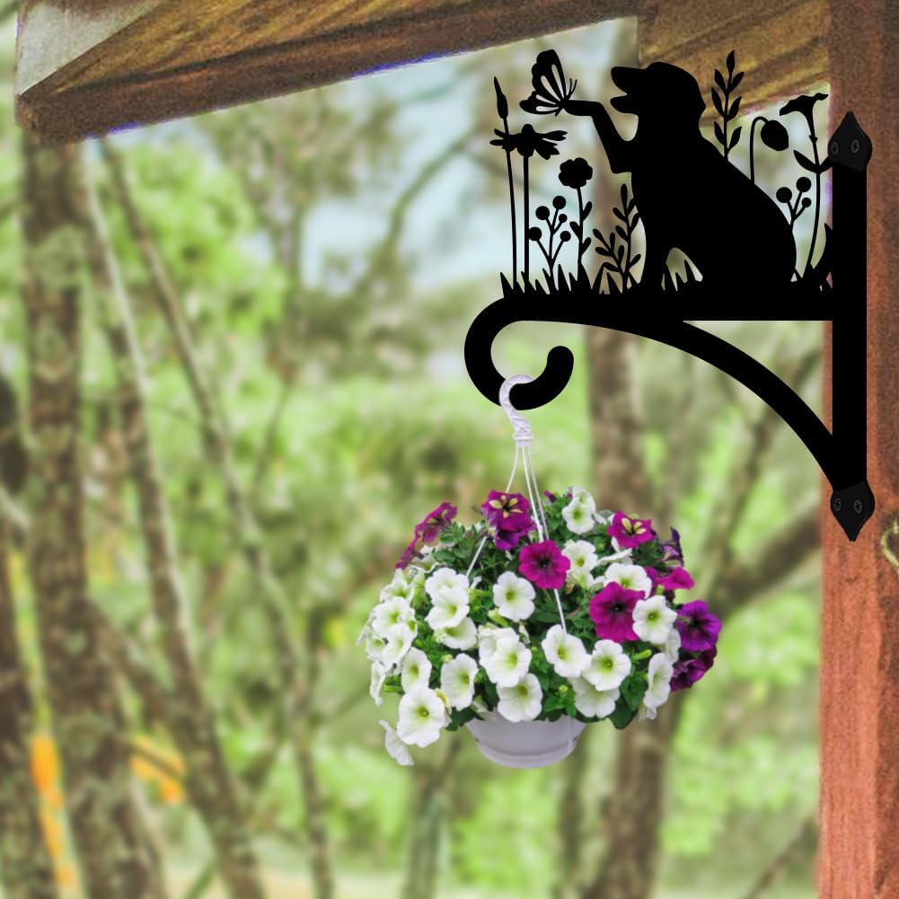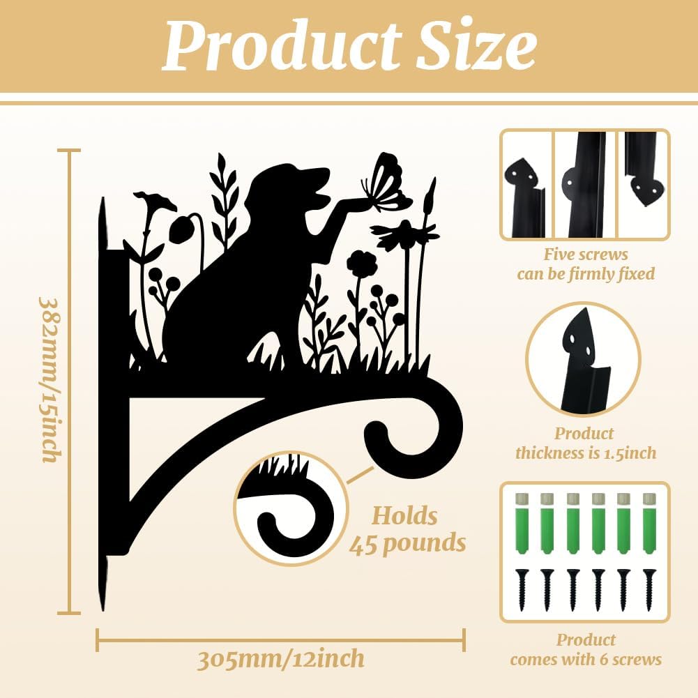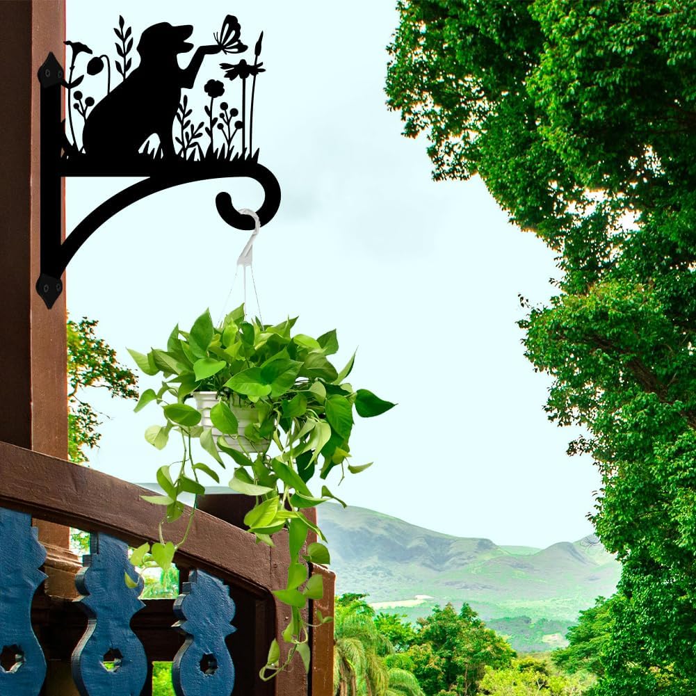 Peacoblue Iron Plant Hangers Holder for Outdoor Indoor Hanging Plants Fern Pots, Lantern, Bird Feeder, Wind Chimes, 12”x14” Dog Weather Resistant Metal Wall Brackets Hooks for Porch, Garden, Home(Dog)