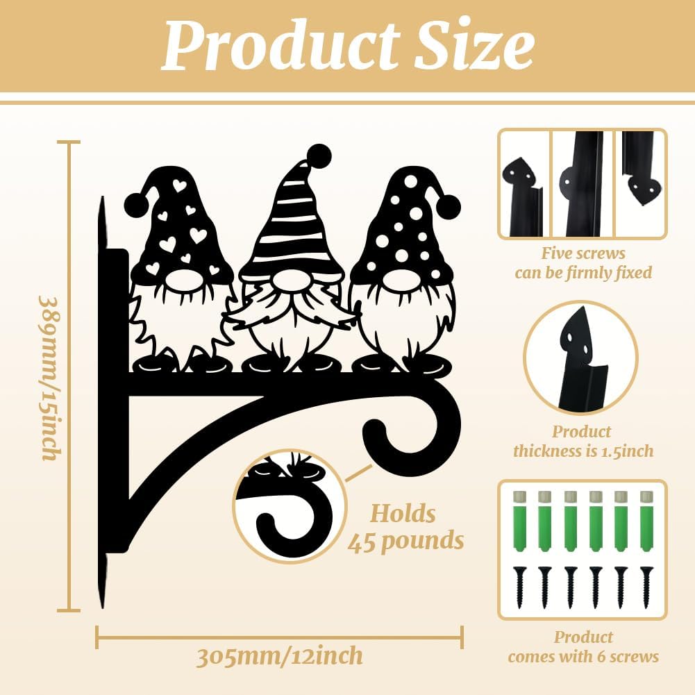 peacoblue Iron Plant Hangers Hooks for Outdoor Indoor Hanging Plants Flower Fern Pots, Lantern, Bird Feeder, 12”x14”Gnome Weather Resistant Metal Wall Brackets Holder for Porch, Garden, House(Gnome)