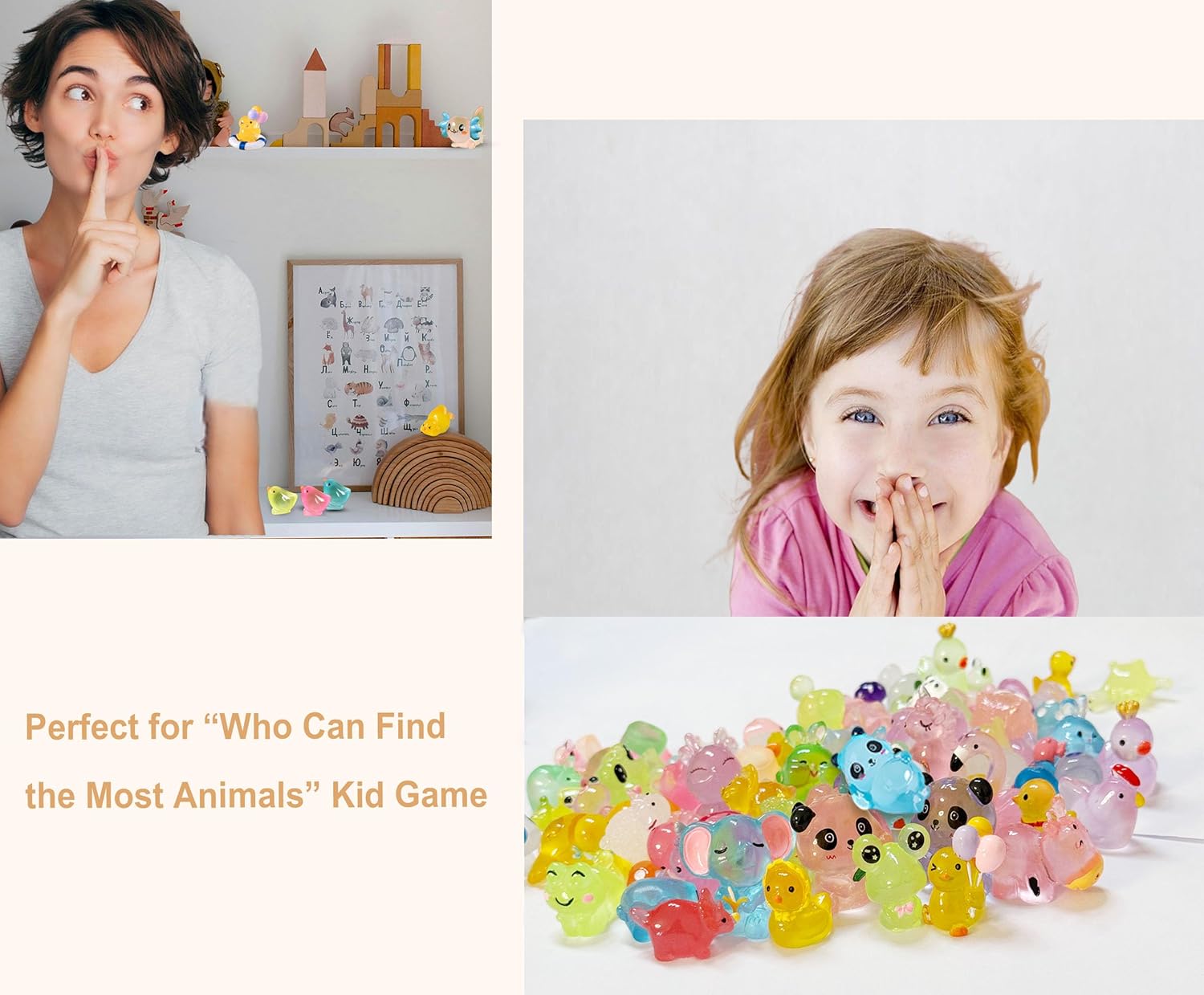 - Enchanting Glow - Illuminate your garden with 100 luminous mini resin animals that emit a gentle glow in the dark, adding a magical ambiance to your fairy garden.