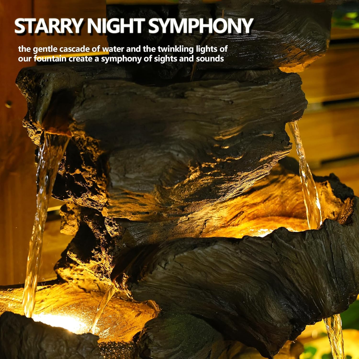 40.5" H Outdoor Garden Water Fountain 5 Tiers Large Cascading Rock Natural Waterfall Outdoor Fountain Resin Imitation Wood with LED Lights for Garden, Patio, Porch