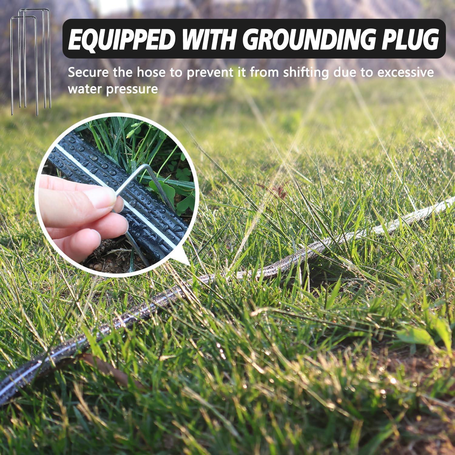 - Tangle-Free Design: Unlike traditional garden hoses, our sprinkler watering hose lies flat on the ground, eliminating the frustration of tangles. Say goodbye to wrestling with knotted hoses and enjoy a seamless watering experience.