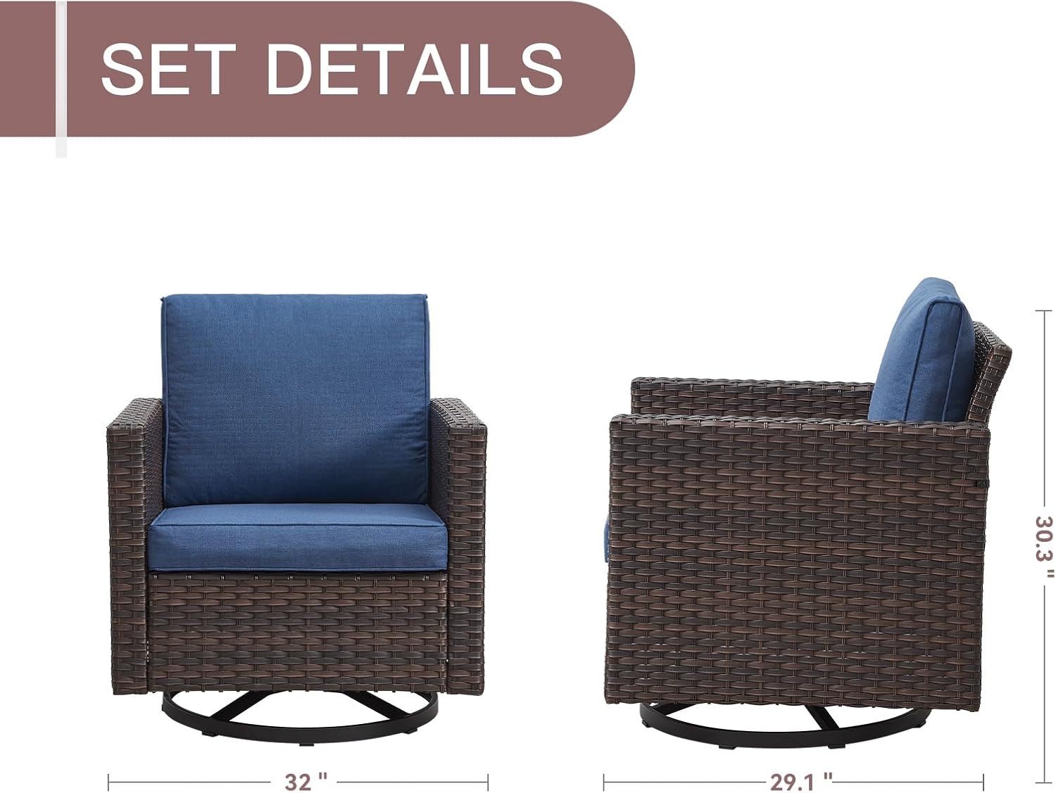 - 360°Swivel Glider Chairs: Design of rotating 360 degree,swinging back and forth,You can easily turn your face away from the sun without moving the entire chair, or swing your seat like a cradle for the ultimate relaxation while listening to music or watching your children play outside.