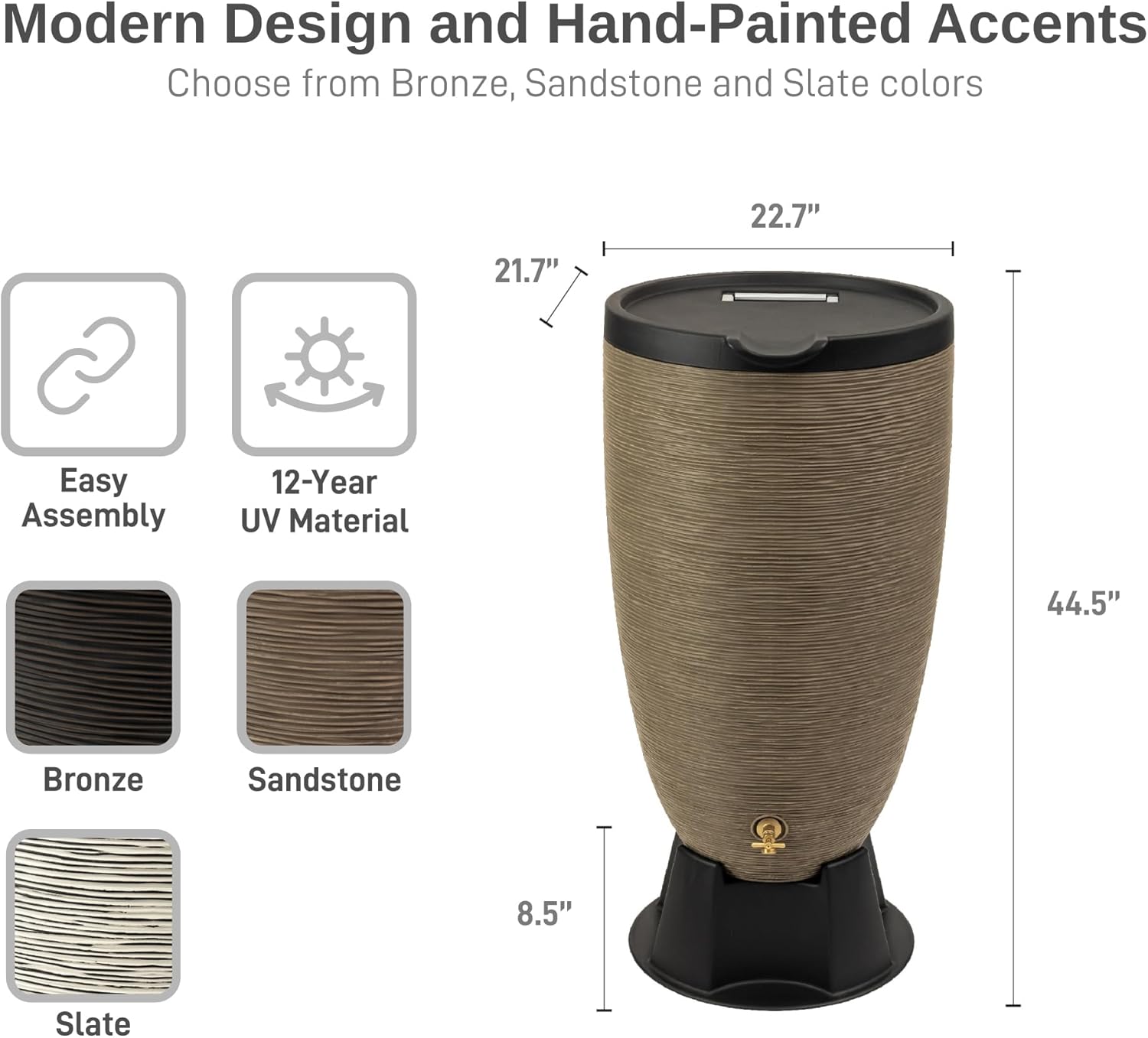 50-Gallon Newport Rain Barrel with Stand and Removable Lid, Sandstone Color