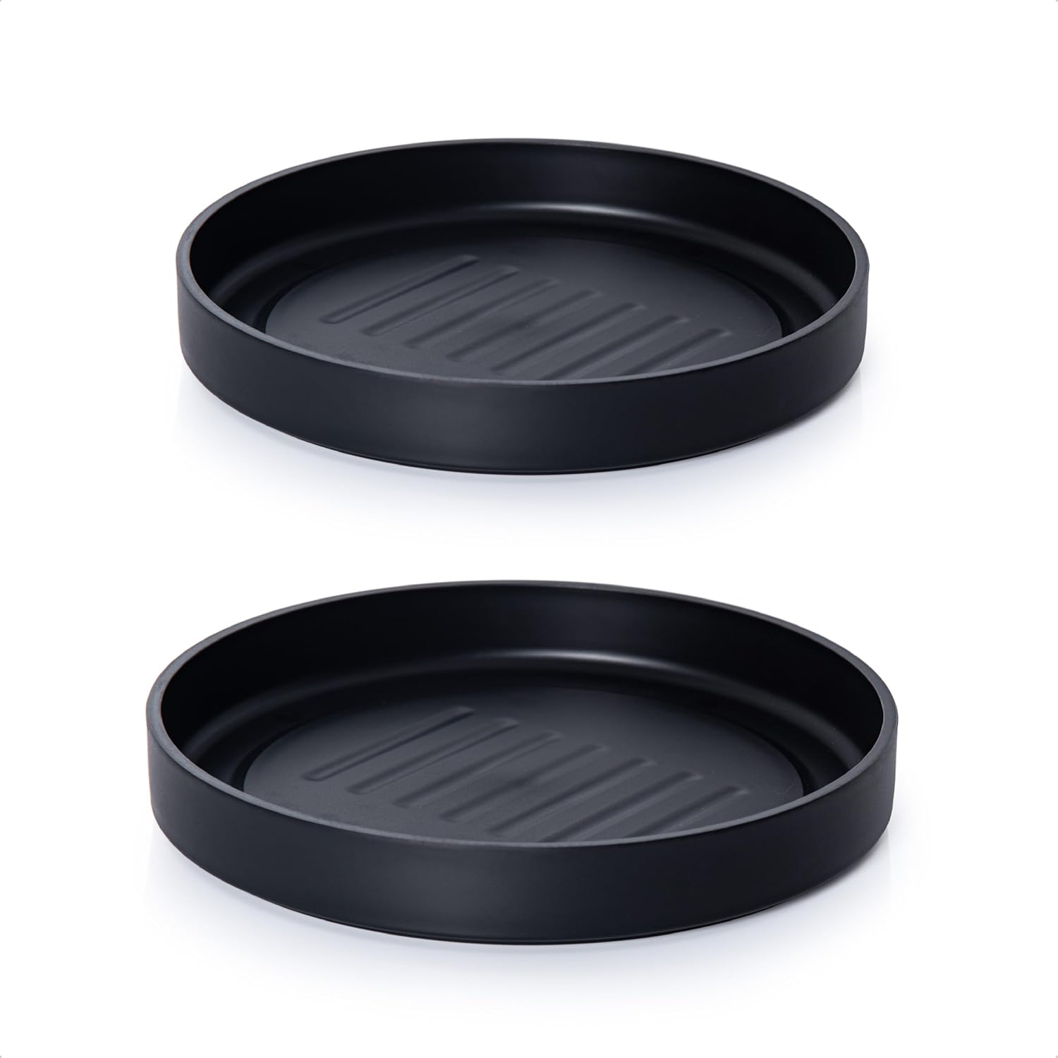 Phoenix Vine 10 Inch Plastic Plant Saucer Water Drip Tray, Heavy Sturdy Round Plant Drainage Tray for Indoors Outdoor, Set of 2, Matte Black, 21-TY-10B-2