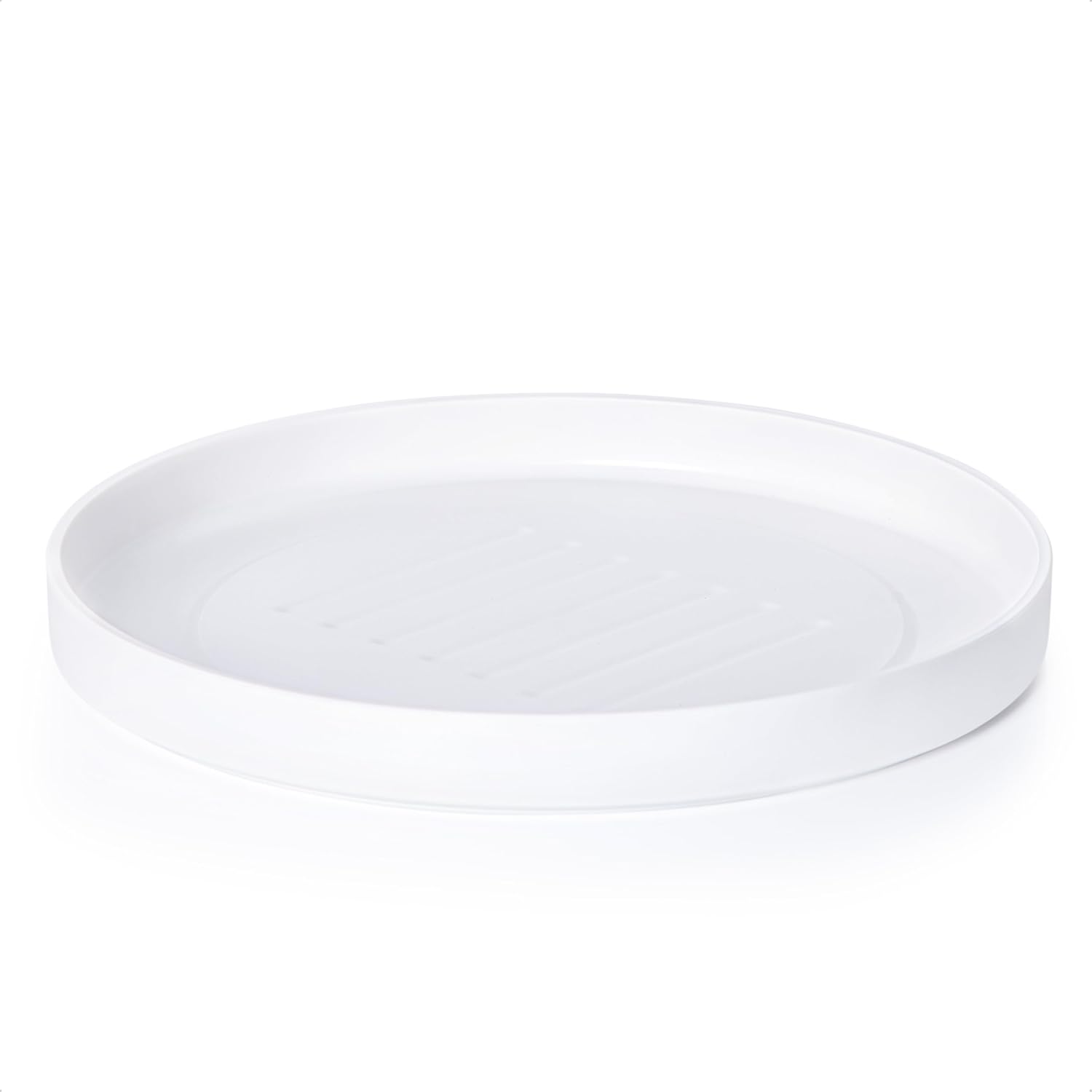 Phoenix Vine 14 Inch Plastic Plant Saucer Water Drip Tray, Heavy Sturdy Round Plant Drainage Tray for Indoors Outdoor, Matte White, 21-TY-14W-1