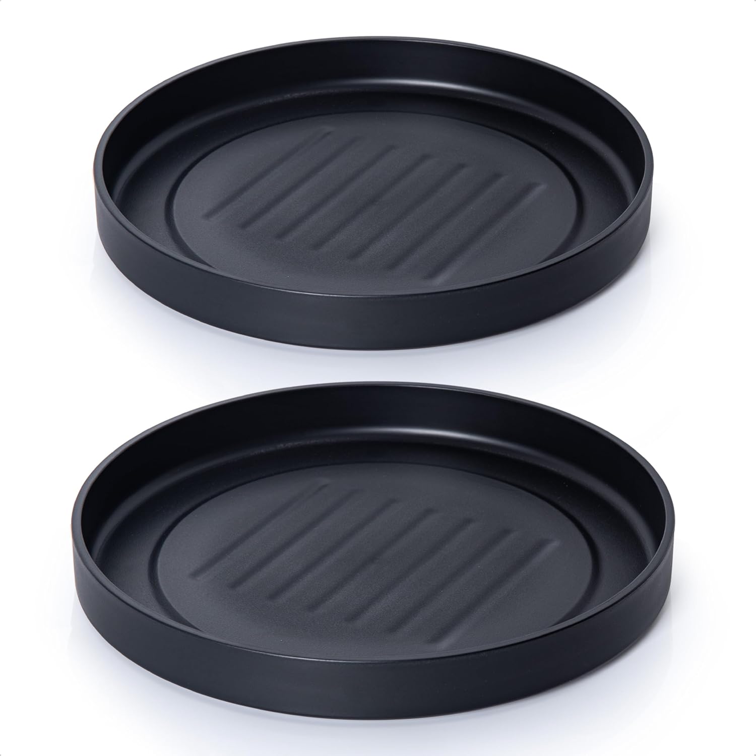 Phoenix Vine 12 Inch Plastic Plant Saucer Water Drip Tray, Heavy Sturdy Round Plant Drainage Tray for Indoors Outdoor, Set of 2, Matte Black, 21-TY-12B-2