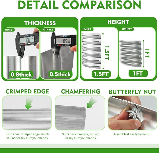 - Materials and Construction: The raised garden bed kit is constructed with sturdy metal 0.8mm thick, providing a reliable framework for your garden. The oval-shaped design adds a unique aesthetic,and the 17" height provides ample depth for plants