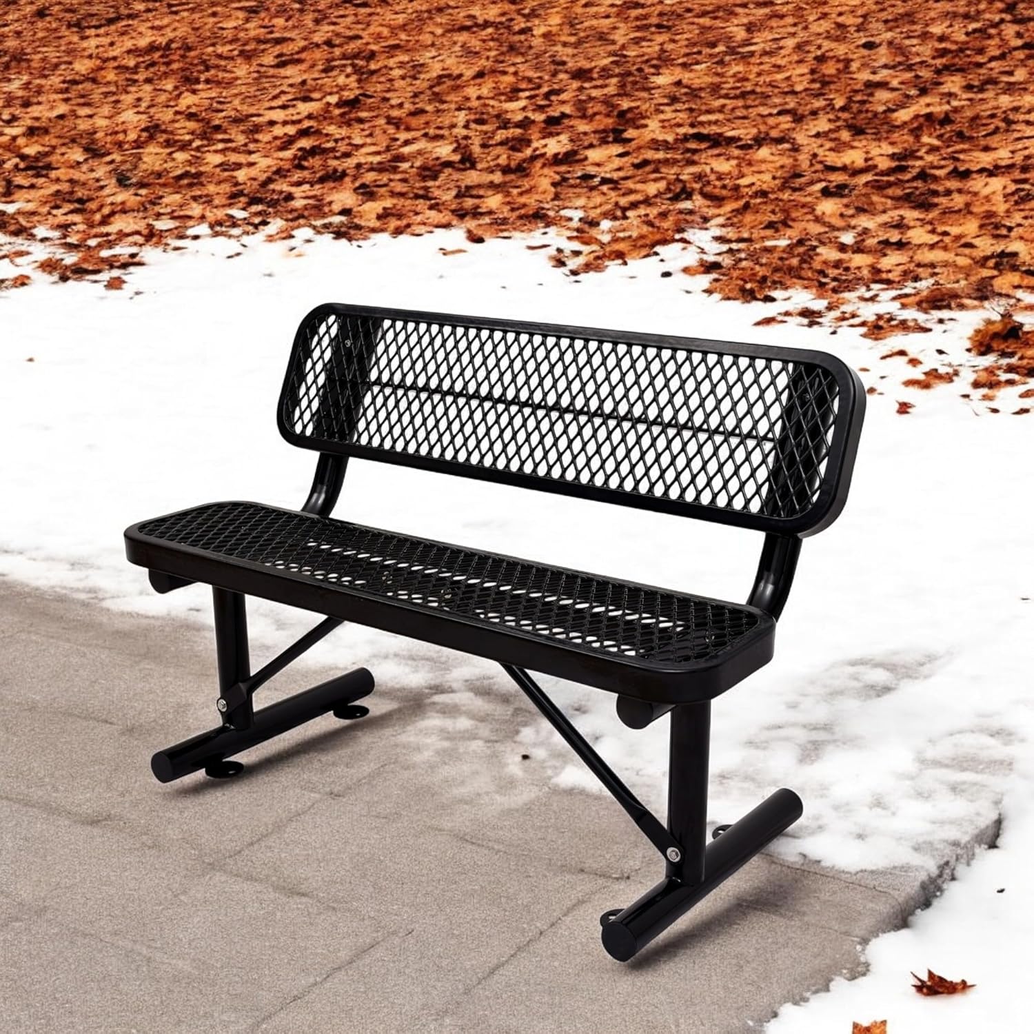4 FT Heavy Duty Metal Park Bench with Back for Outside, Outdoor Black Bench with Backrest & Portable Frame, 1-3 Person Seat-Commercial Benches Garden Benches for Outdoors