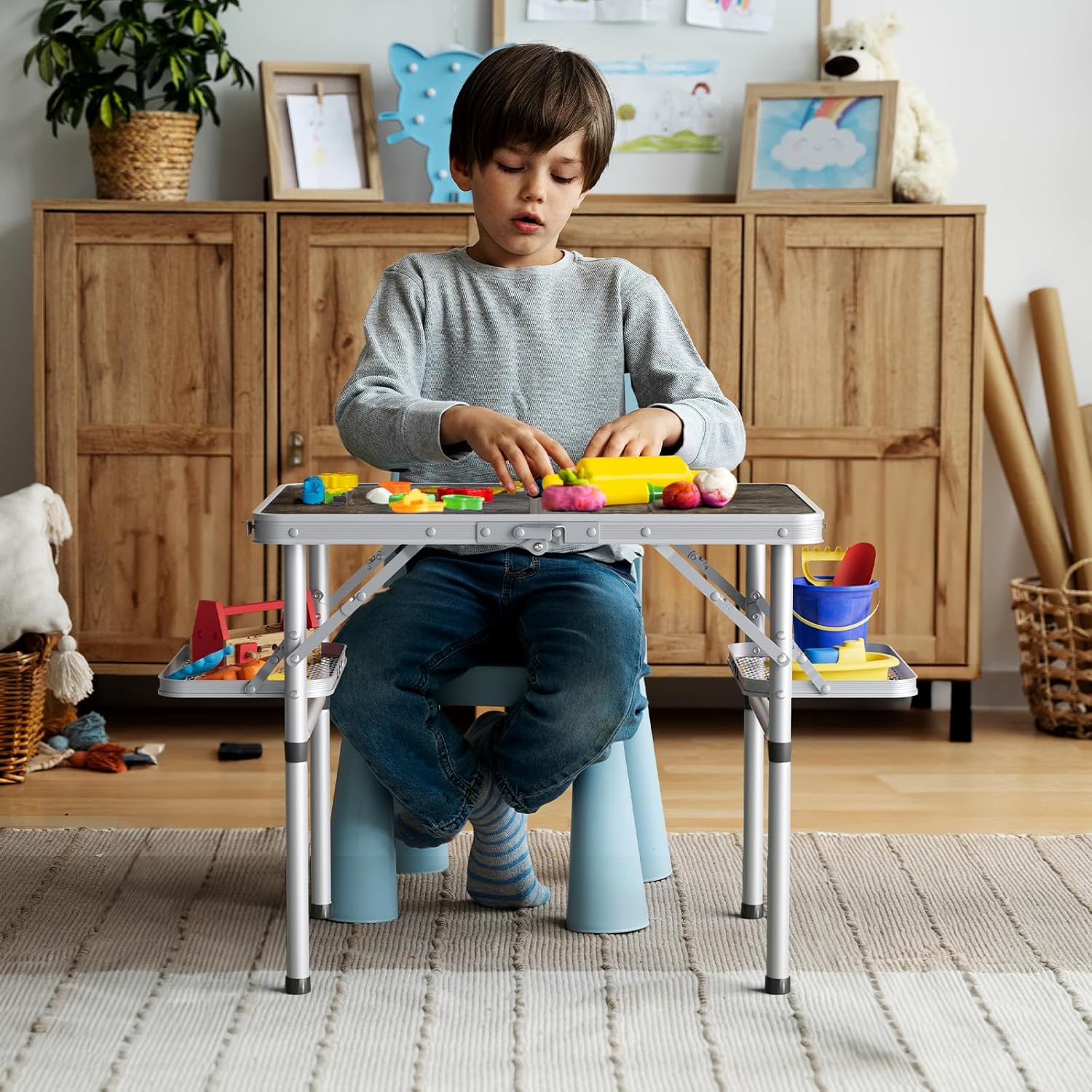 - Perfect Fathers Days Gift. All-purpose Camping Table with Extra Wings. Partitioned use, no more mess. You can also use it as a picnic table, beach table, patio table, bed table,etc. Just take one, you can have them all.