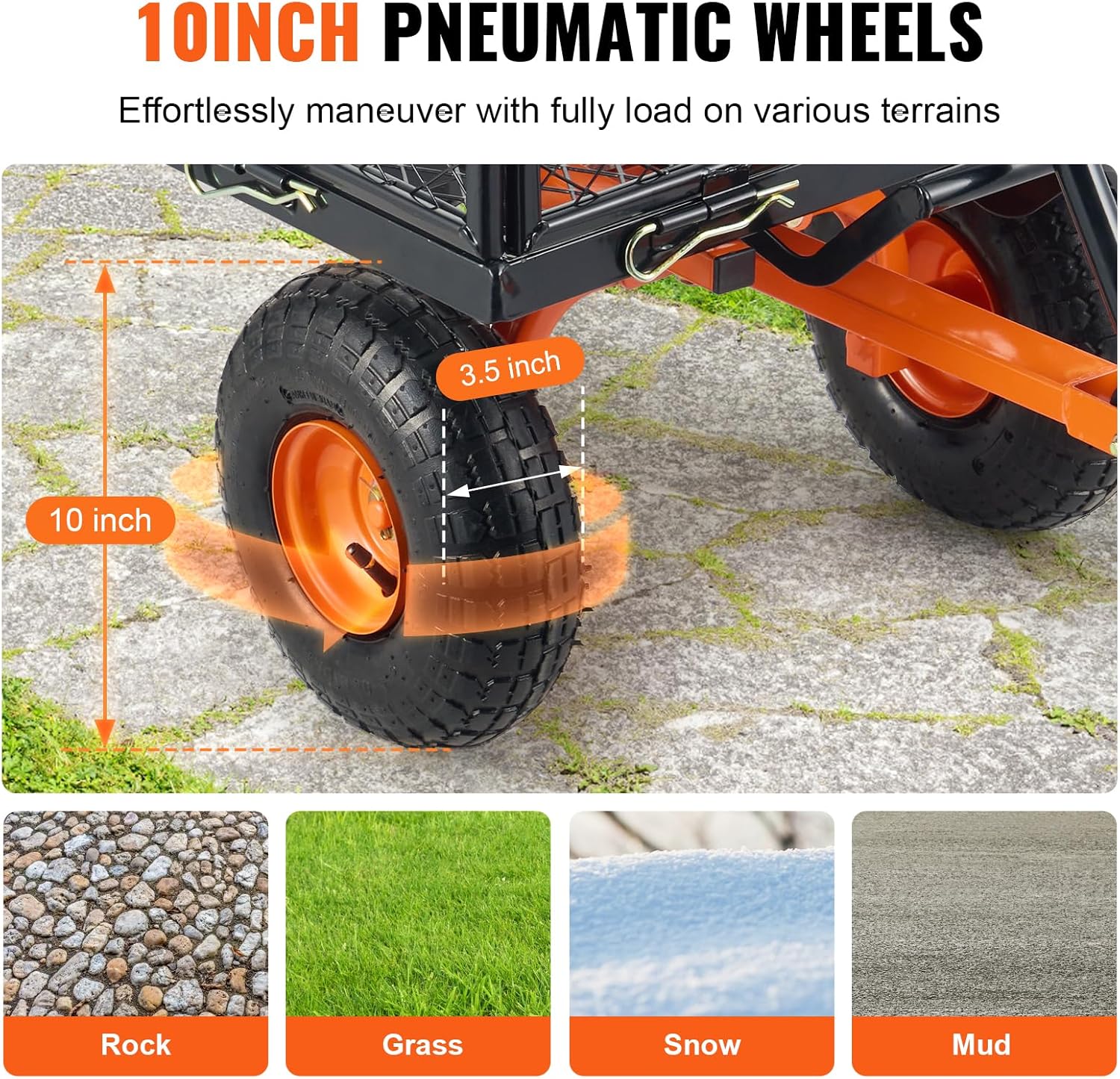 VEVOR 880lbs Steel Garden Dump Cart Utility Wagon, Heavy Duty Yard Dump Wagon Cart with Removable Sides, Pullable Handle, Utility Liner, 10in All Terrain Wheels