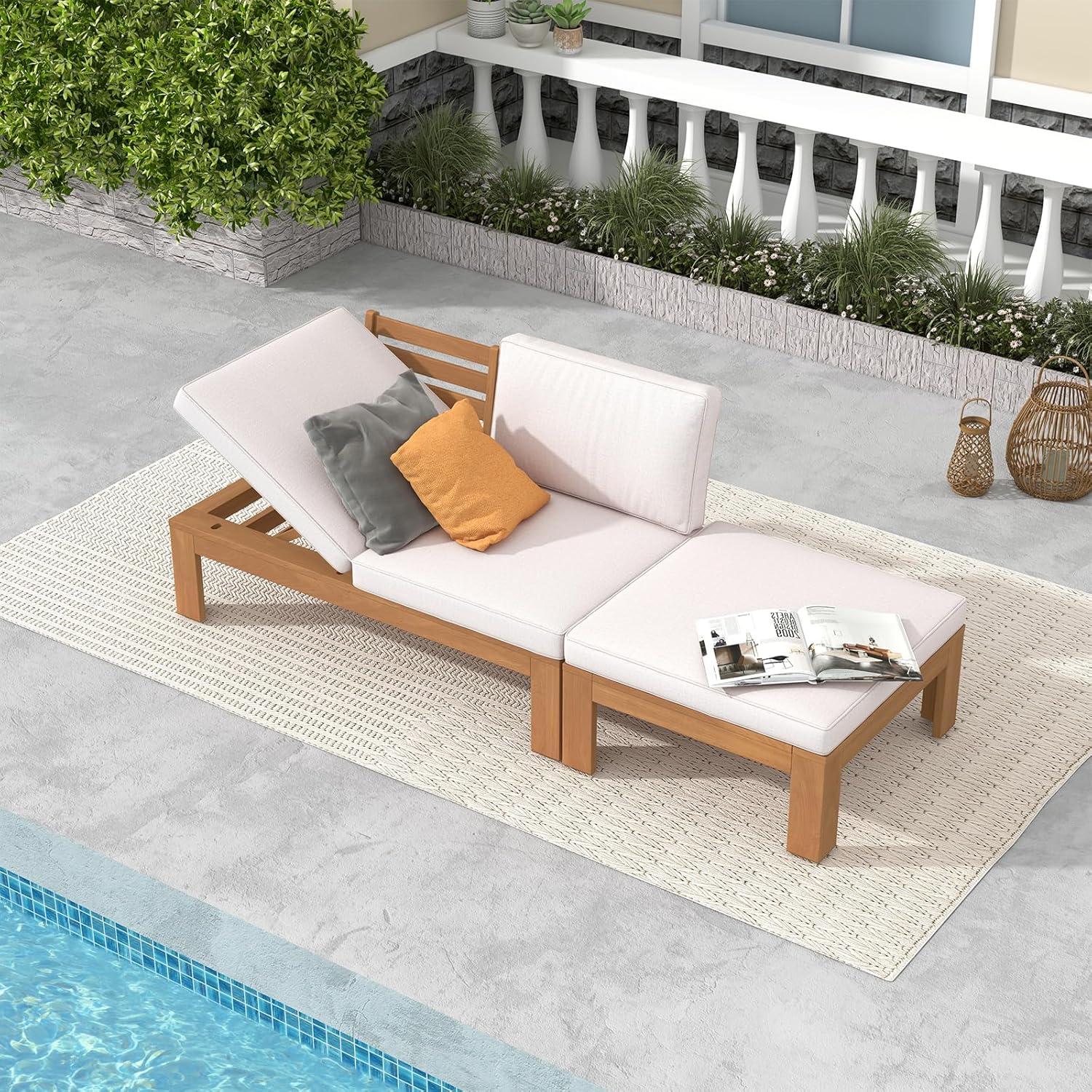 SUNSITT 2 Piece Acacia Wood Patio Furniture Outdoor Loveseat Sofa Set with Adjustable Armrest, FSC Certified L-Shaped Patio Set w/2-in-1 Coffee Table, Cream White Cushions for Garden