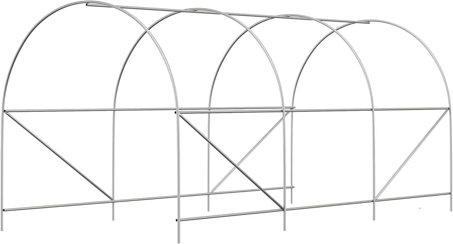 - Robust Steel Frame: Constructed with a heavy-duty galvanized steel frame, our high tunnel greenhouse resists water damage and remains free from chipping or peeling. It includes four slant supporting rods. Secure the structure using the provided four guy ropes and support stakes on soft surfaces.