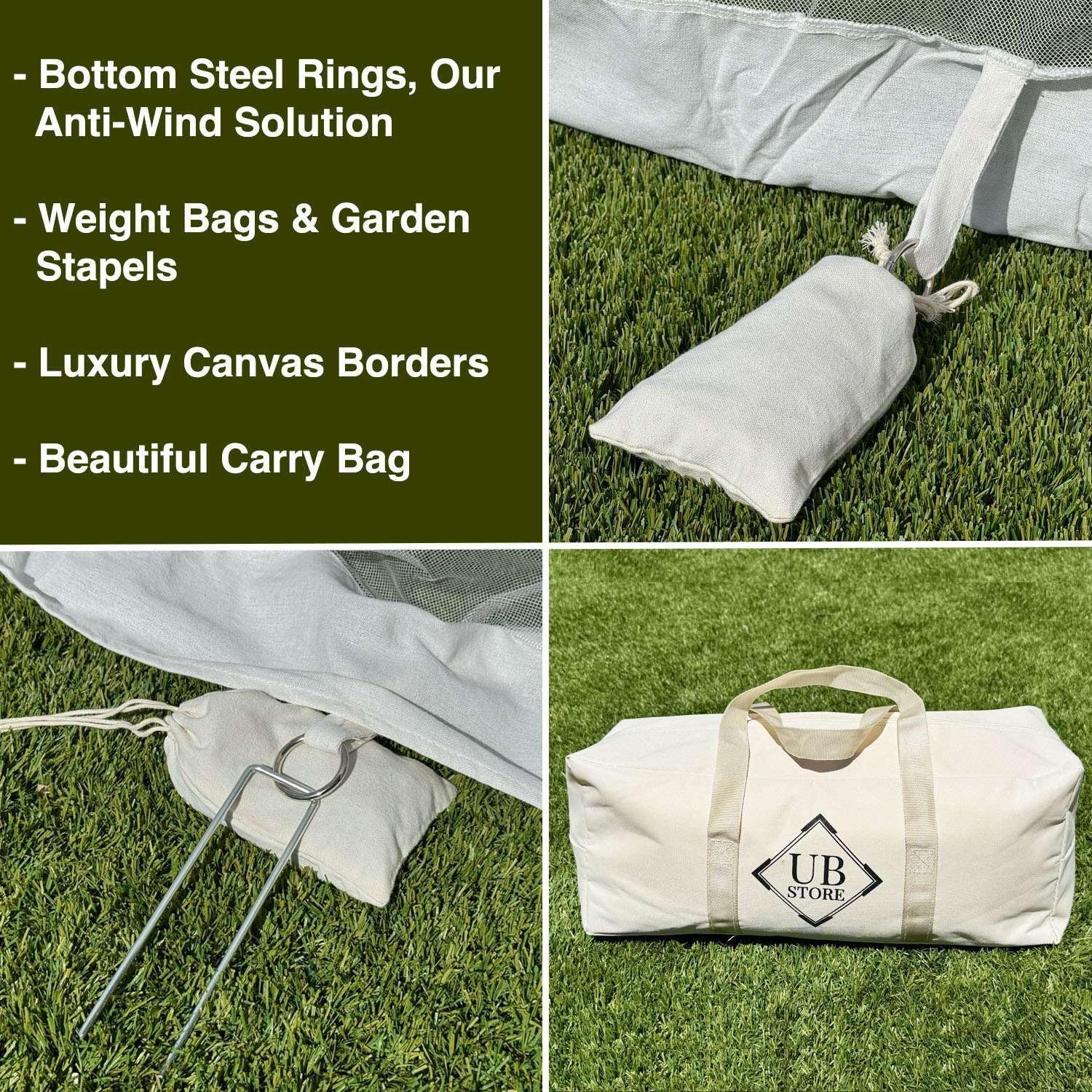 - ANTI-WIND SOLUTION! Enjoy mosquito protection and a serene outdoor experience even in windy conditions. Use our heavy-weight bags to anchor the net to the bottom steel rings, or use our tent pins to secure it firmly.