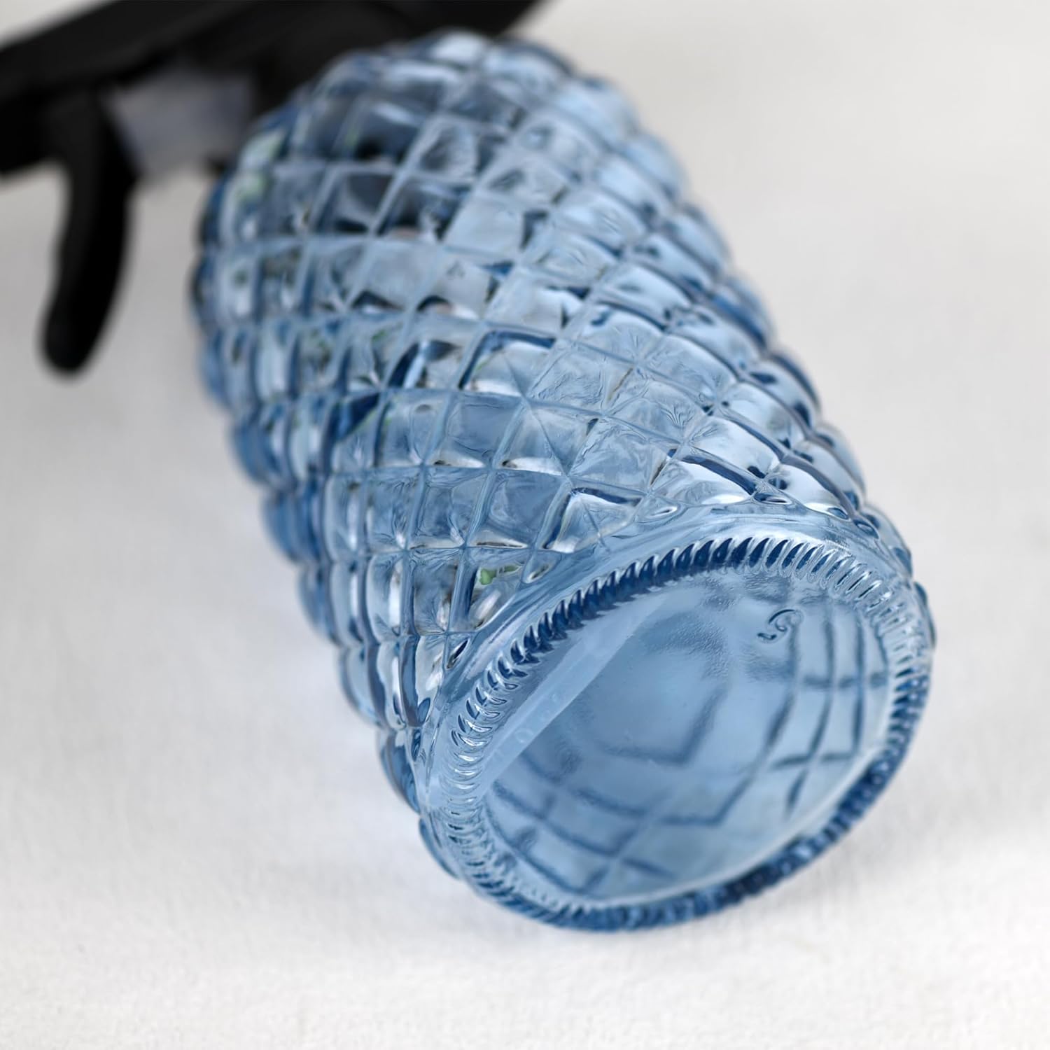 12Oz Glass Plant Spray Bottle, Gem Pattern Glass Sprayer, Watering Can with Black Plastic Top Pump, Handheld Watering Can for Indoor Outdoor Potted Plants and Greenery (Blue)