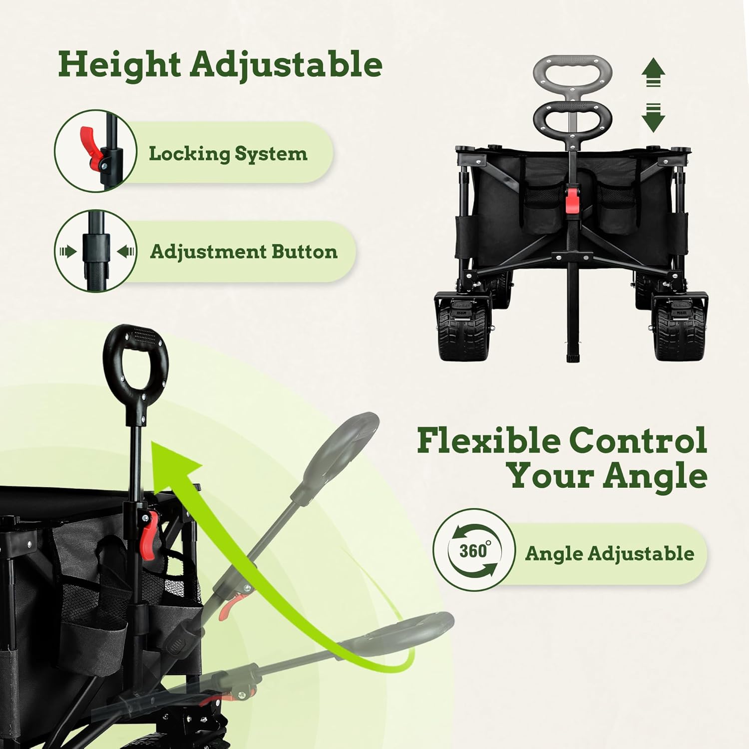 - 【Easy Control Your Wagon】LUXCOL wagon cart boasts an ergonomic telescoping handle that drastically enhances maneuverability and reduces pulling effort to a minimum, saving you energy for the things that matter most. The adjustable handle length caters to individuals of all heights to find a comfortable maneuvering height at will.