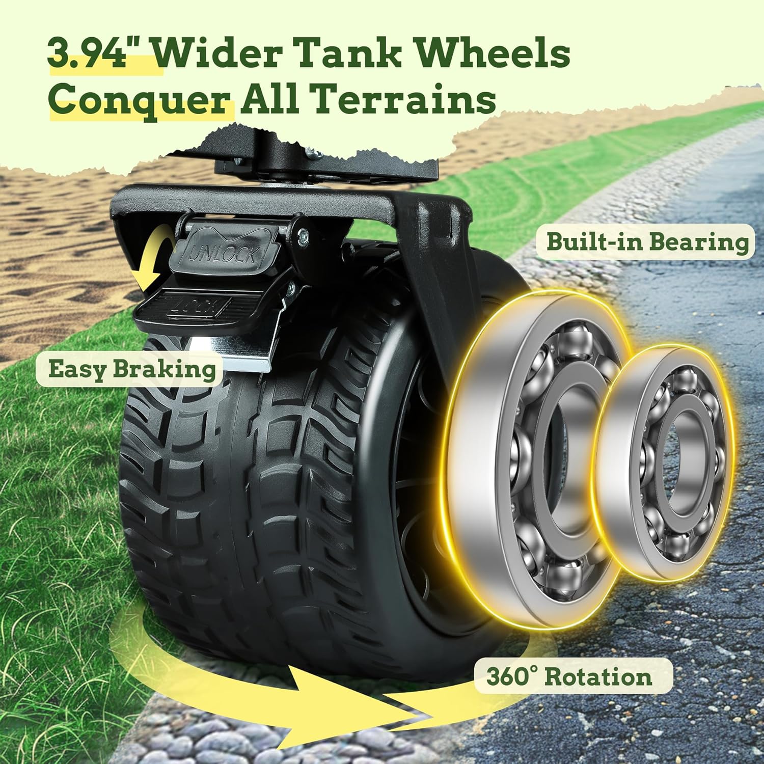 - 【Conquer All Terrains Wheels】LUXCOL collapsible wagon engineered with four 3.94'' all-terrain widen wheels designed to smoothly traverse diverse surfaces like mud, grass, gravel, and wooden pathways without any risk of tipping. Its built-in dual-bearing design ensures smoother steering and dragging for optimal performance. Thanks to the two flexible front swivel wheels capable of 360-degree rotation, maneuvering the cart through narrow apartment hallways or bustling sidewalks one-handed becomes effortlessly manageable. Locking front wheels prevent foldable wagons from rolling away when on a slope.