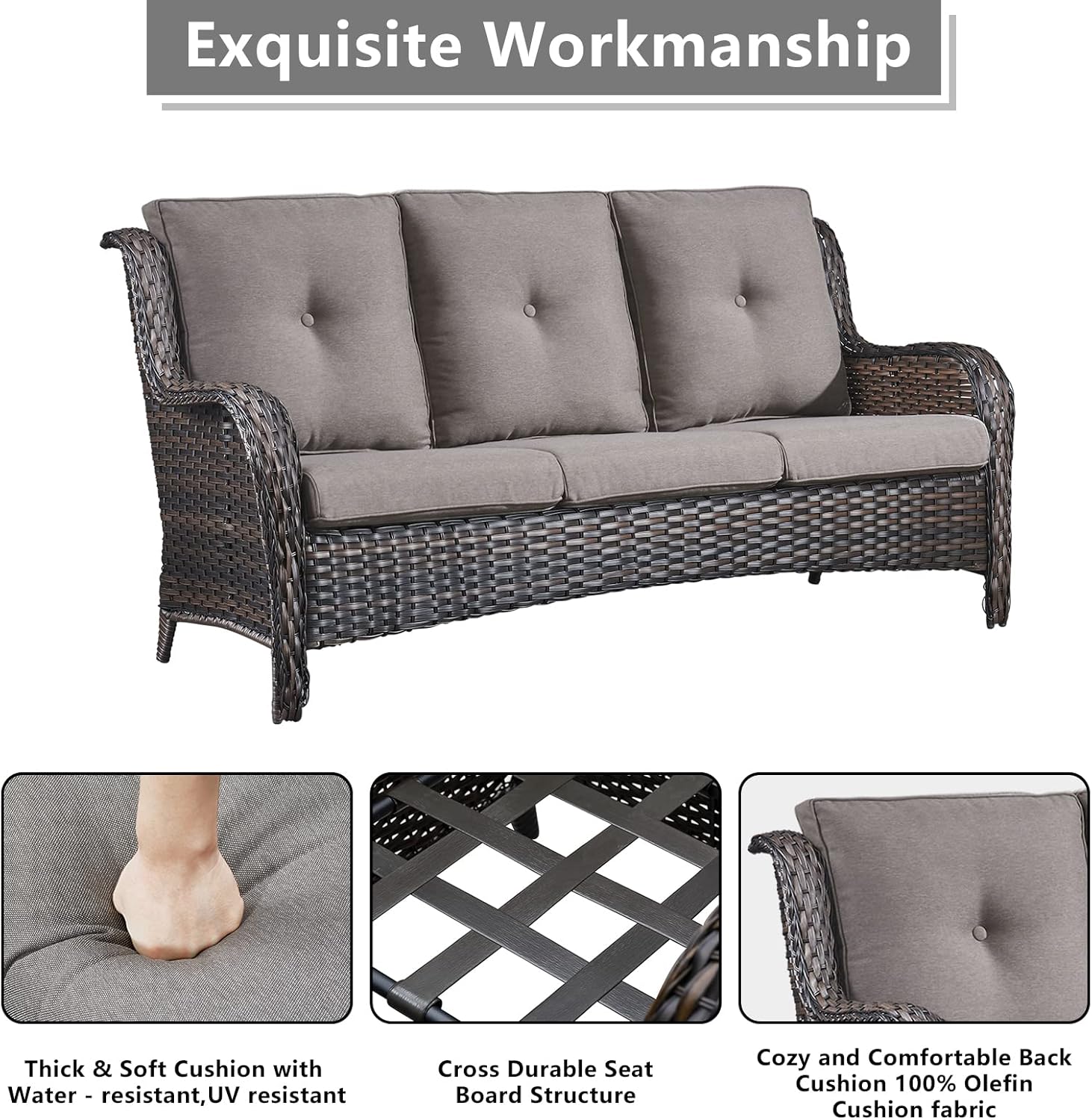 - 【Comfort Cushions & Deep Seating】This patio wicker swivel chairs and sofa feature deep and wide seats,with 4-inch thick sponge-padded seat cushions,5-inch back cushion create the ultimate patio seating experience.